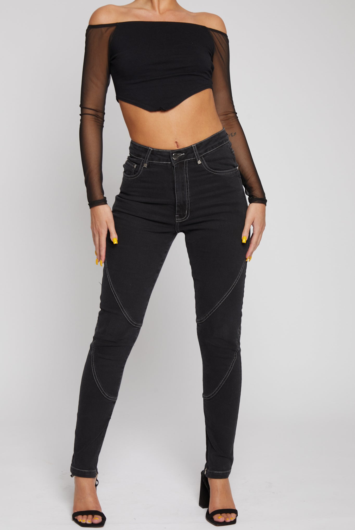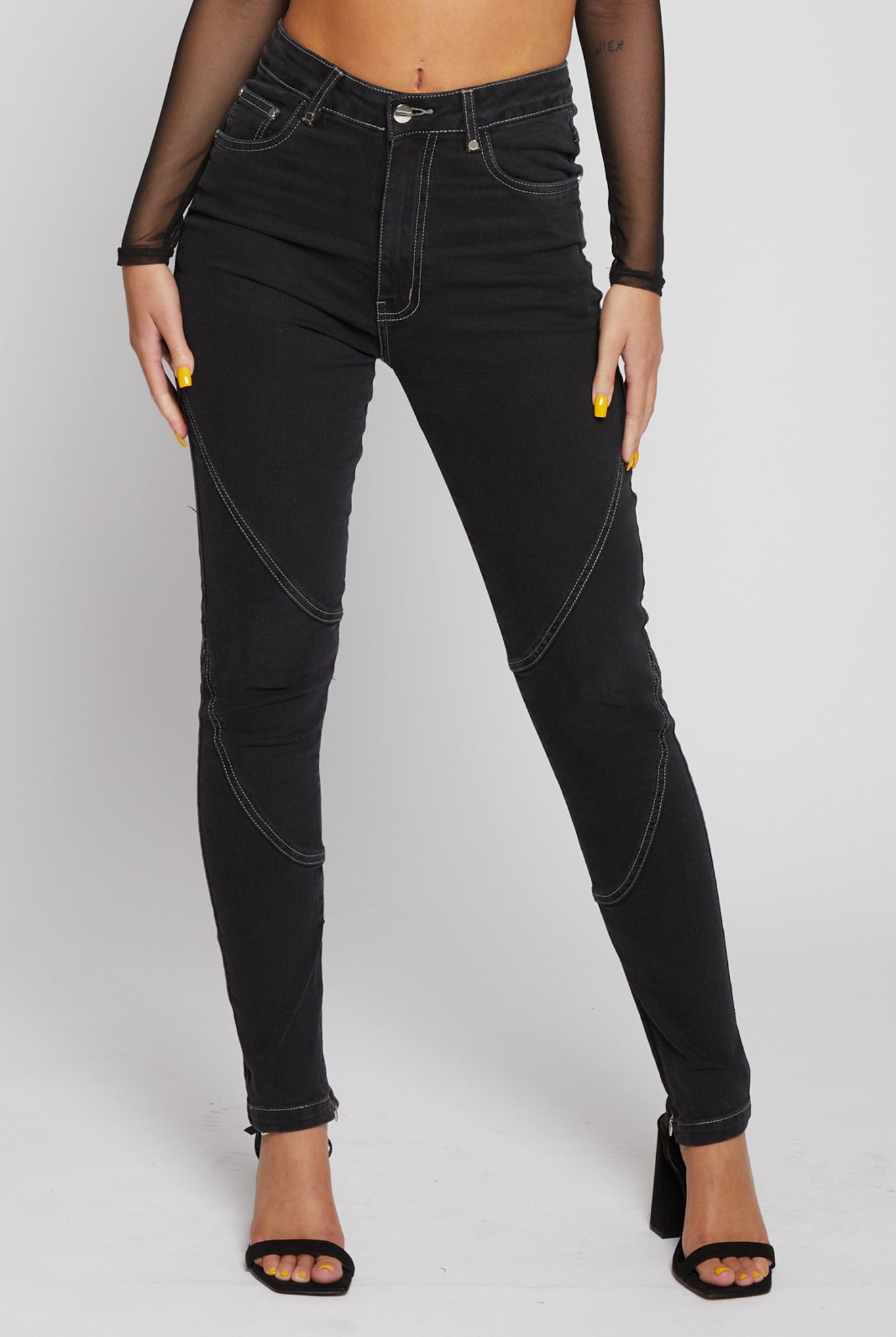 Our black wash skinny biker jean is the perfect fit for your body. The high-rise waistband holds everything in, while the skinny leg silhouette creates a long and lean look. Pair these jeans with a flowy top and heels for a night out, or dress them down with a tee and sneakers for a casual day look. No matter how you style them, you're sure to look and feel your best in our skinny biker jean. So what are you waiting for? Add this jean to your cart today, and get ready to rock your new favorite pair!