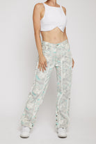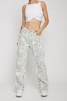 PRINTED STRAIGHT LEG JEANS - LIGHT GREEN
