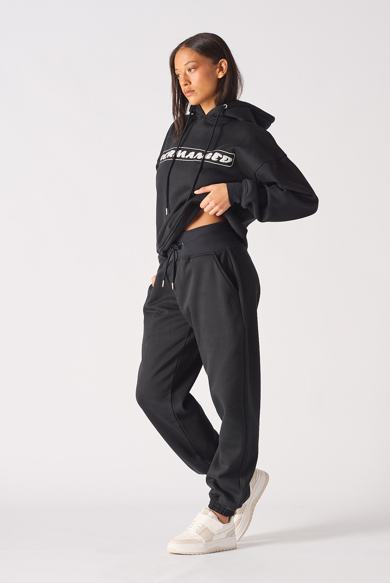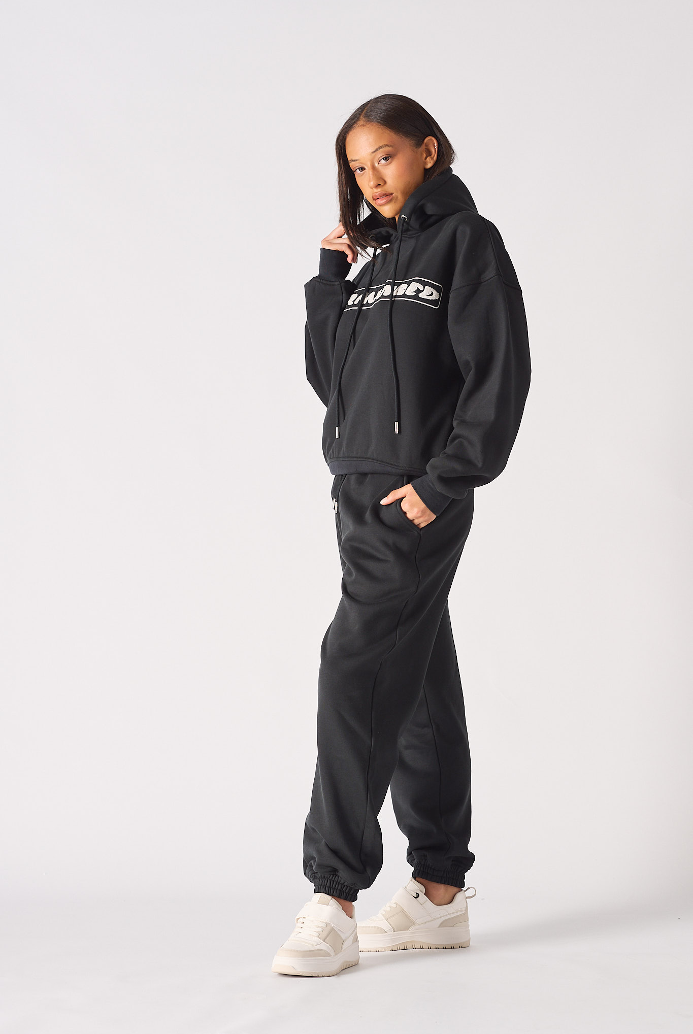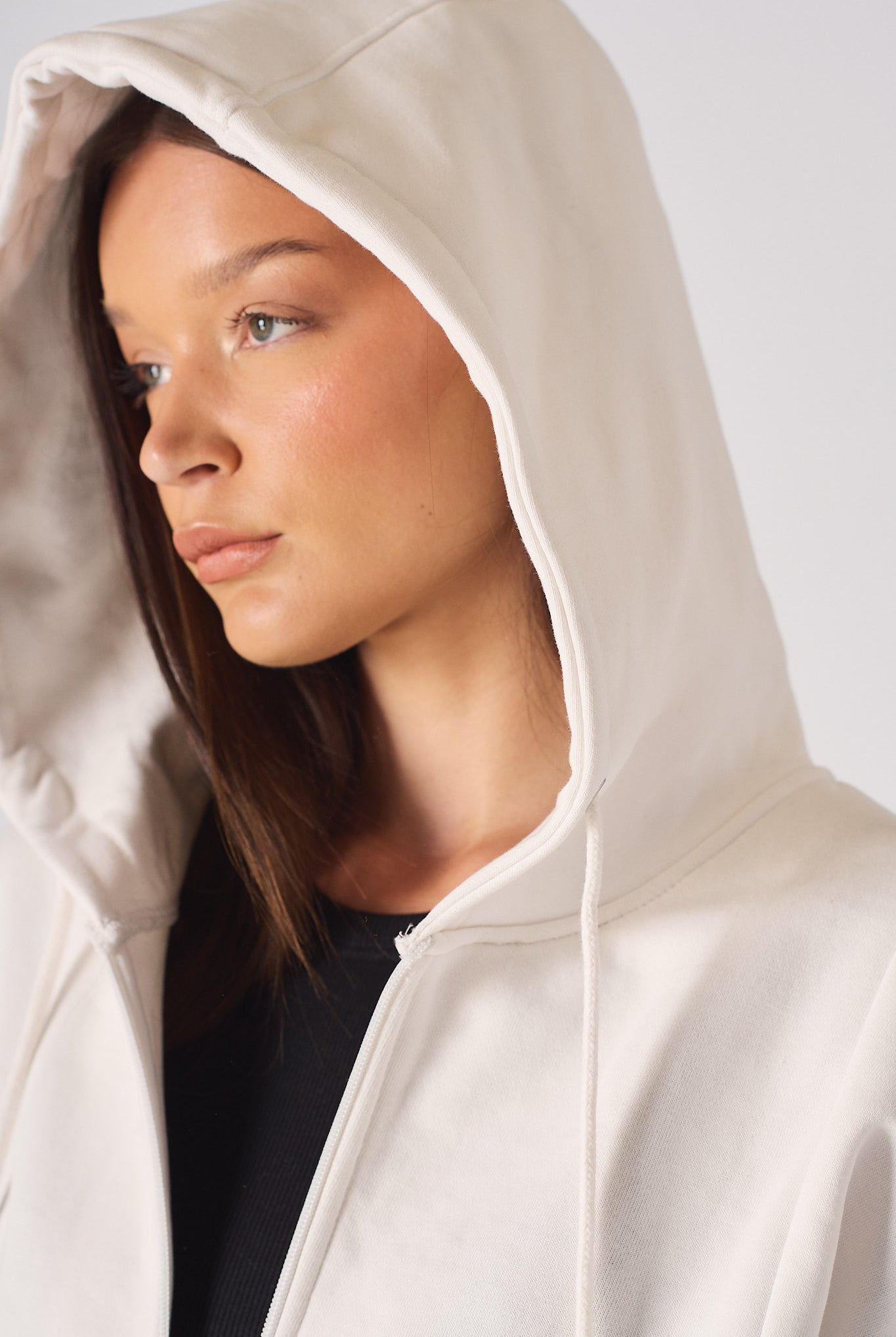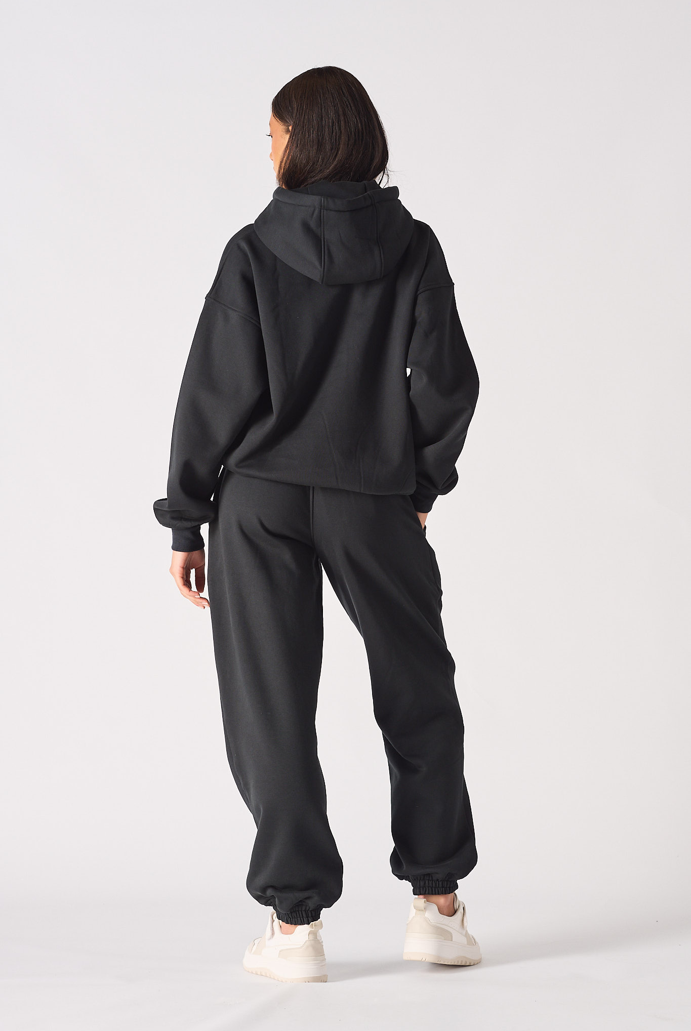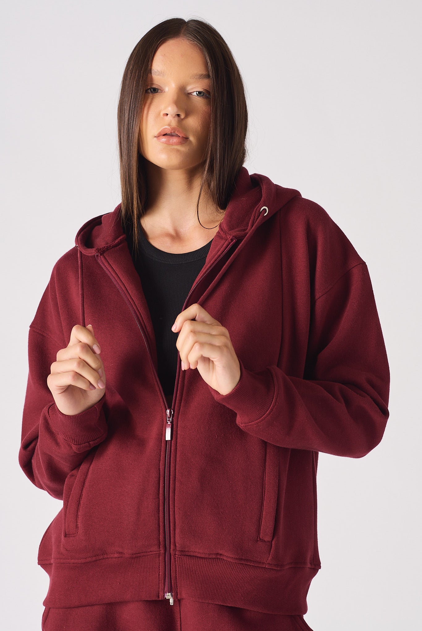 Our premium Women's black zip-up hoodie is a true wardrobe staple. It's made from quality polycotton that's extra soft and features a tonal zipper opening, brushback quality, and seam detailing for a stylish look. Plus, its unisex hoodie design makes it an excellent option for both men and women. It is a slightly oversized and drop-shoulder design that ensures comfort to the wearer.