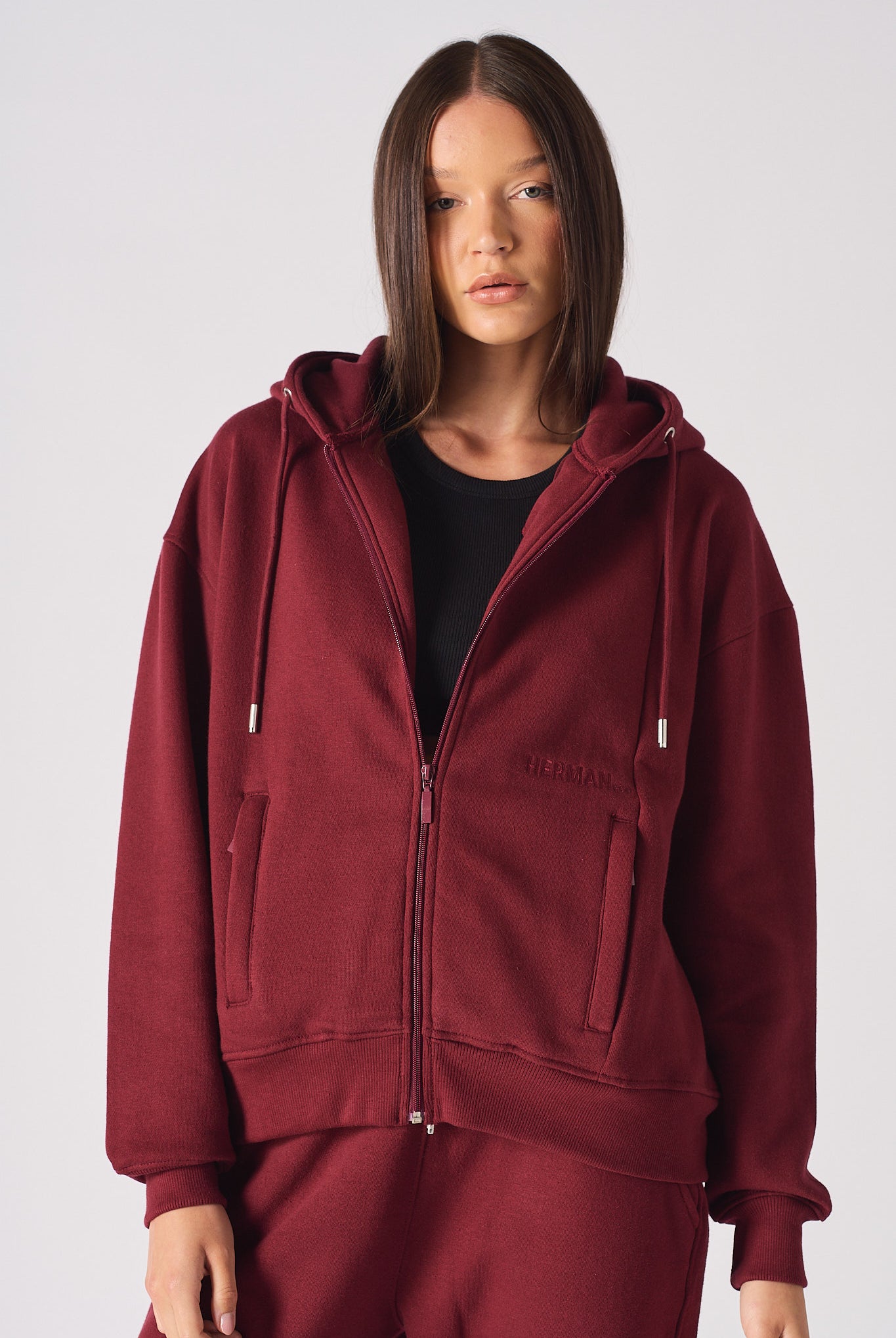 REGULAR ZIP UP HOODIE - BLACK