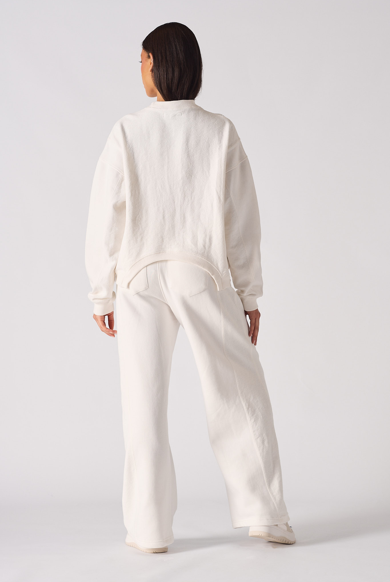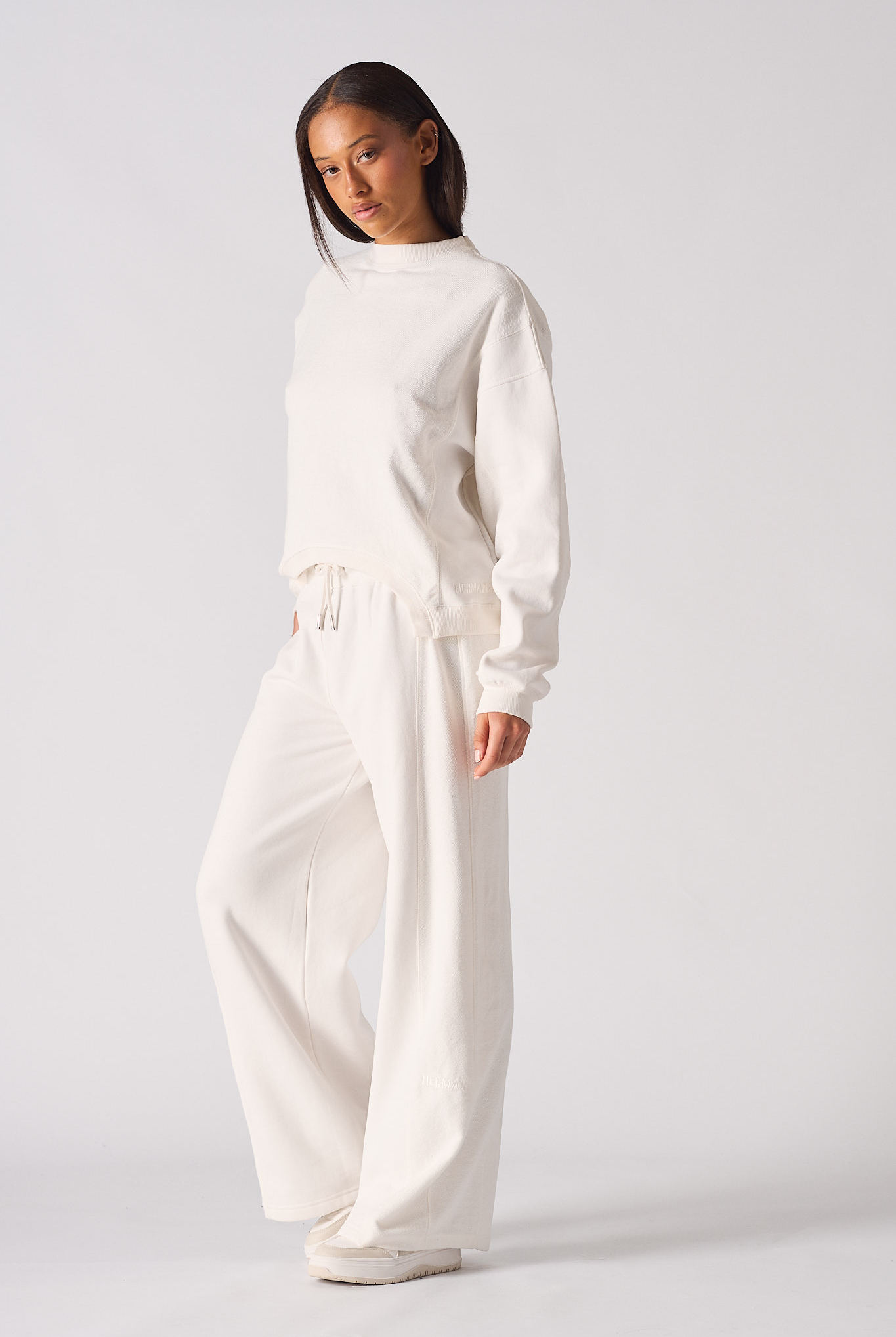 Our white Women's wide leg joggers is a must-have for the ultimate lounger. Made with super soft polycotton, and look great when paired up under your favourite hoodie or sweatshirt during a casual weekend! The wide-leg fit and relaxed feel will make you want to kick back in them all day long. We've added patch pockets to the back, side slip pockets to the front, and seam detailing for an added touch of luxury. So go ahead and elevate your lounge game with our Women's wide leg joggers.