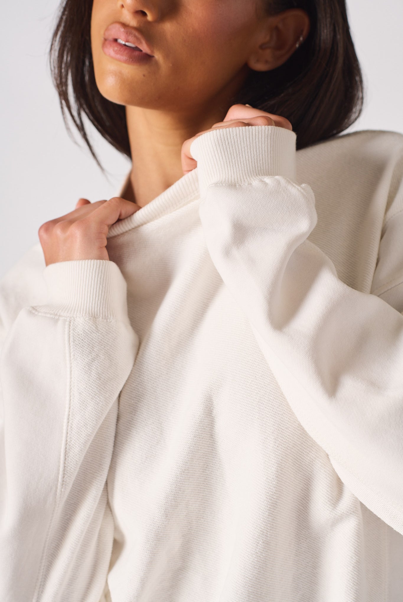 - Collar inspired hem brushback quality - extra soft