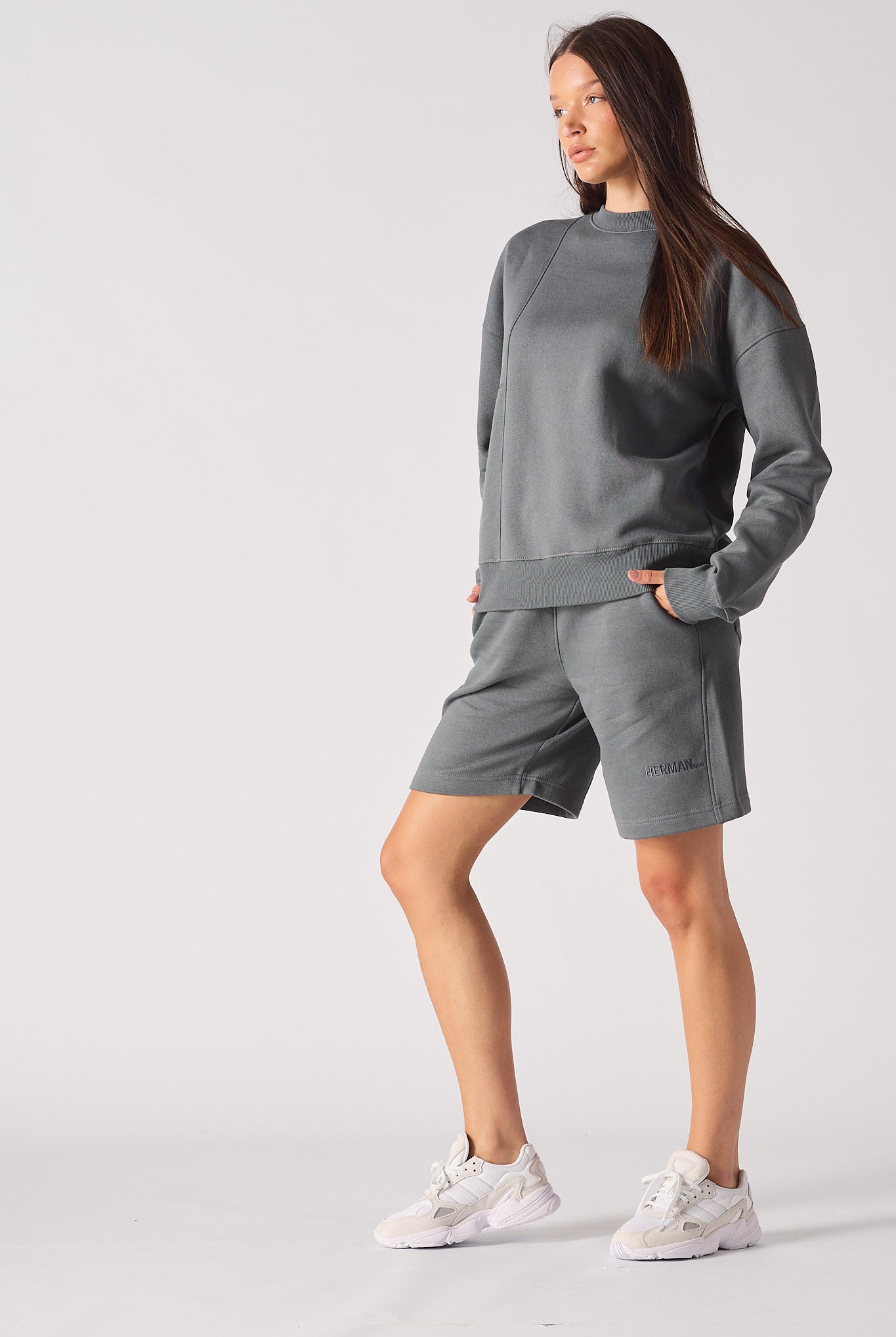 Looking for something comfy and stylish to lounge around in? Check out our women's A-LINE short! Made from a cool grey polycotton blend, it's super soft and comfortable to wear. The brushback quality gives it a bit of an edge. Plus, the seam detailing makes this piece really stand out. Pair cool grey A-LINE short with a tank top and you're good to go!