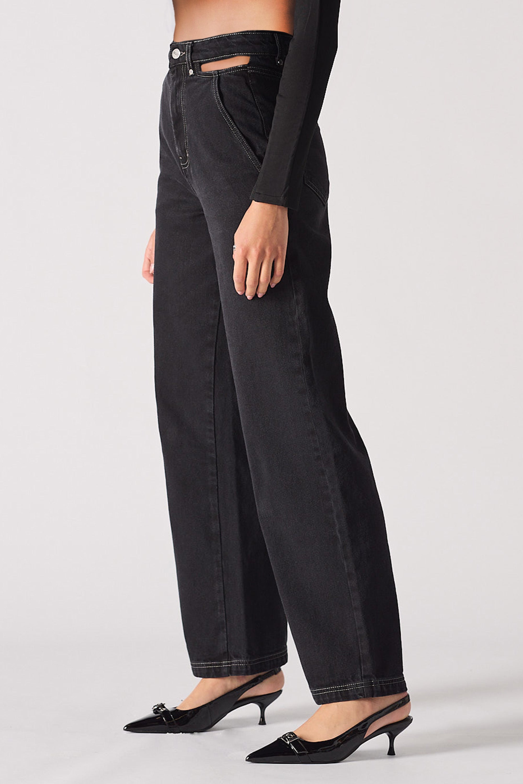 Looking for a streetwear style that will turn heads? Our cut out jeans are exactly what you need! Made from premium black wash denim, they feature a stylish cut out detail that's perfect for showing off your unique sense of style. Additionally, the internal waistband adjusters allow you to get a custom fit, while the straight leg fit ensures maximum comfort. So go ahead and rock these jeans with confidence – you'll look great and feel amazing in black wash cut out jeans!