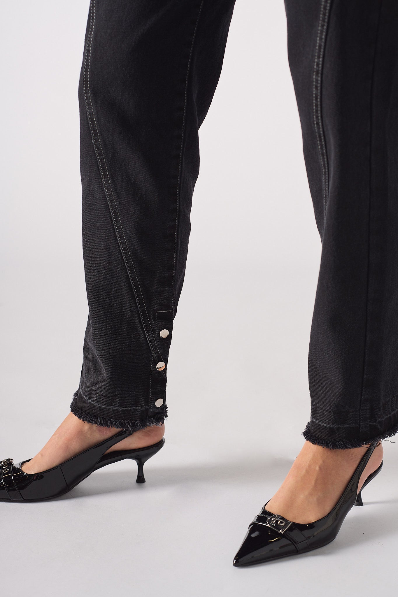 Introducing our black wash straight leg jeans! These stylish and comfortable jeans are perfect for adding some edge to your casual streetwear look. The premium black wash fabric is accented with seam details and internal waistband adjusters for a perfect fit. Made from 100% cotton, these jeans are super comfy and stylish. The silver poppers at the hem add a touch of flair, while the frayed hem gives them a trendy finish. Our straight leg black wash jeans are sure to become your new go-to!