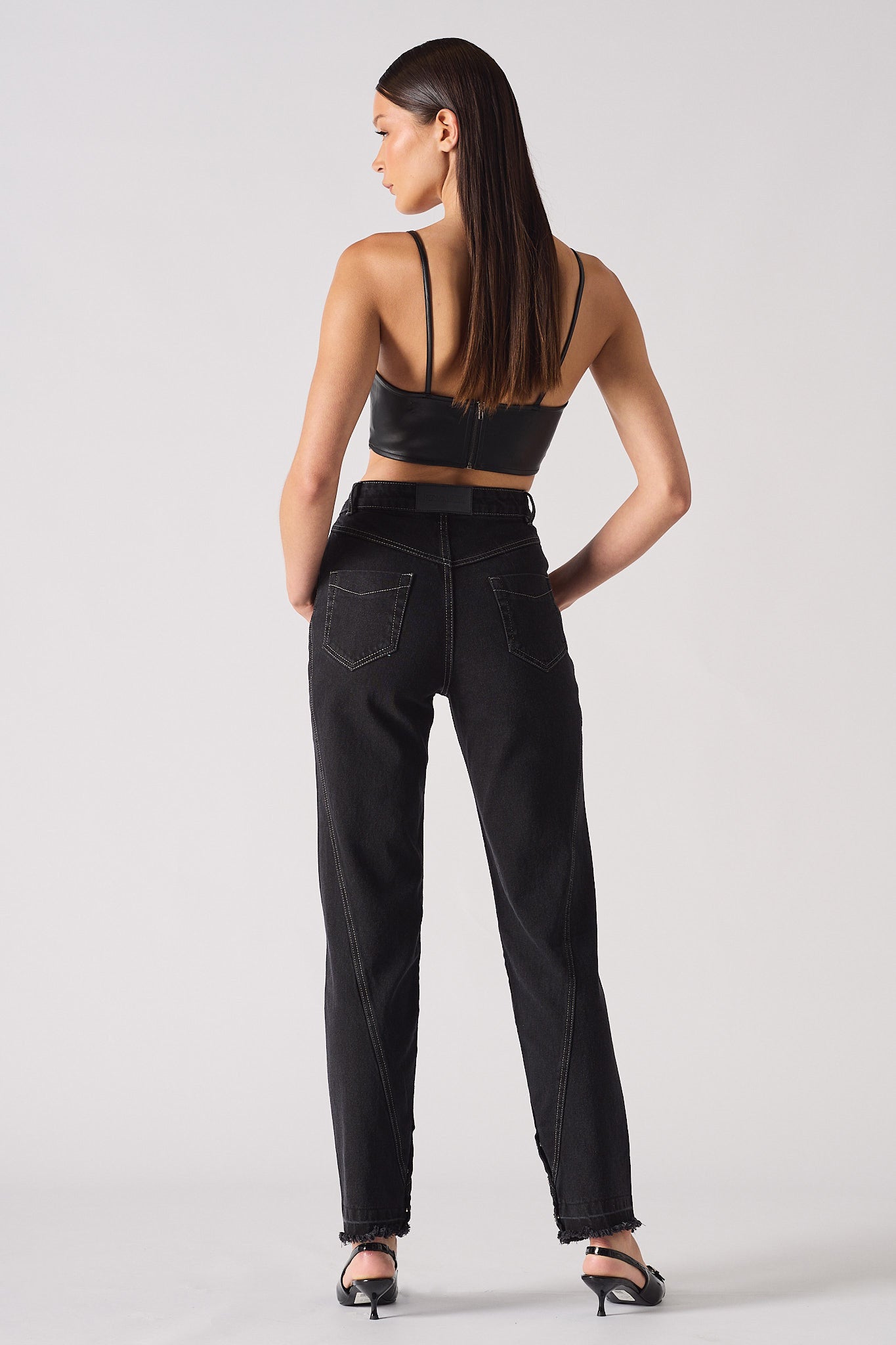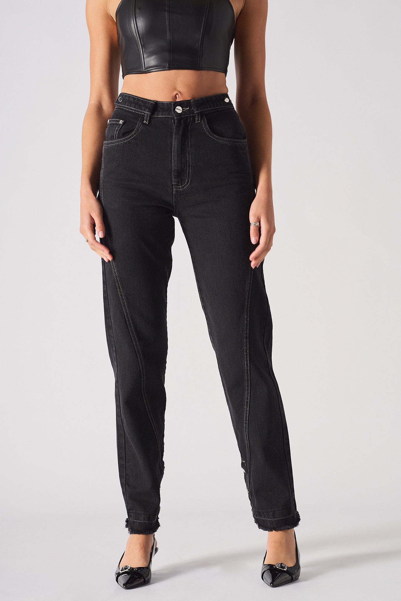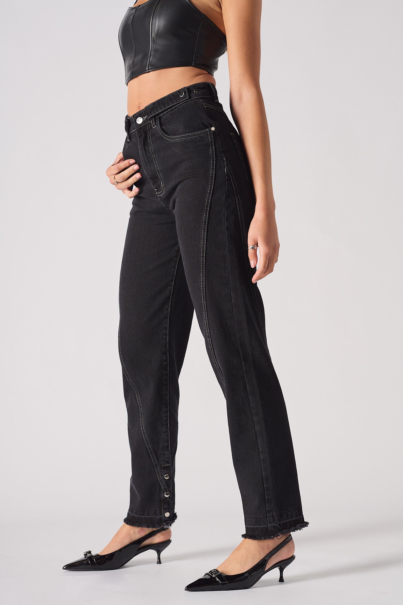 HIGH WAISTED STRAIGHT LEG JEANS - BLACK