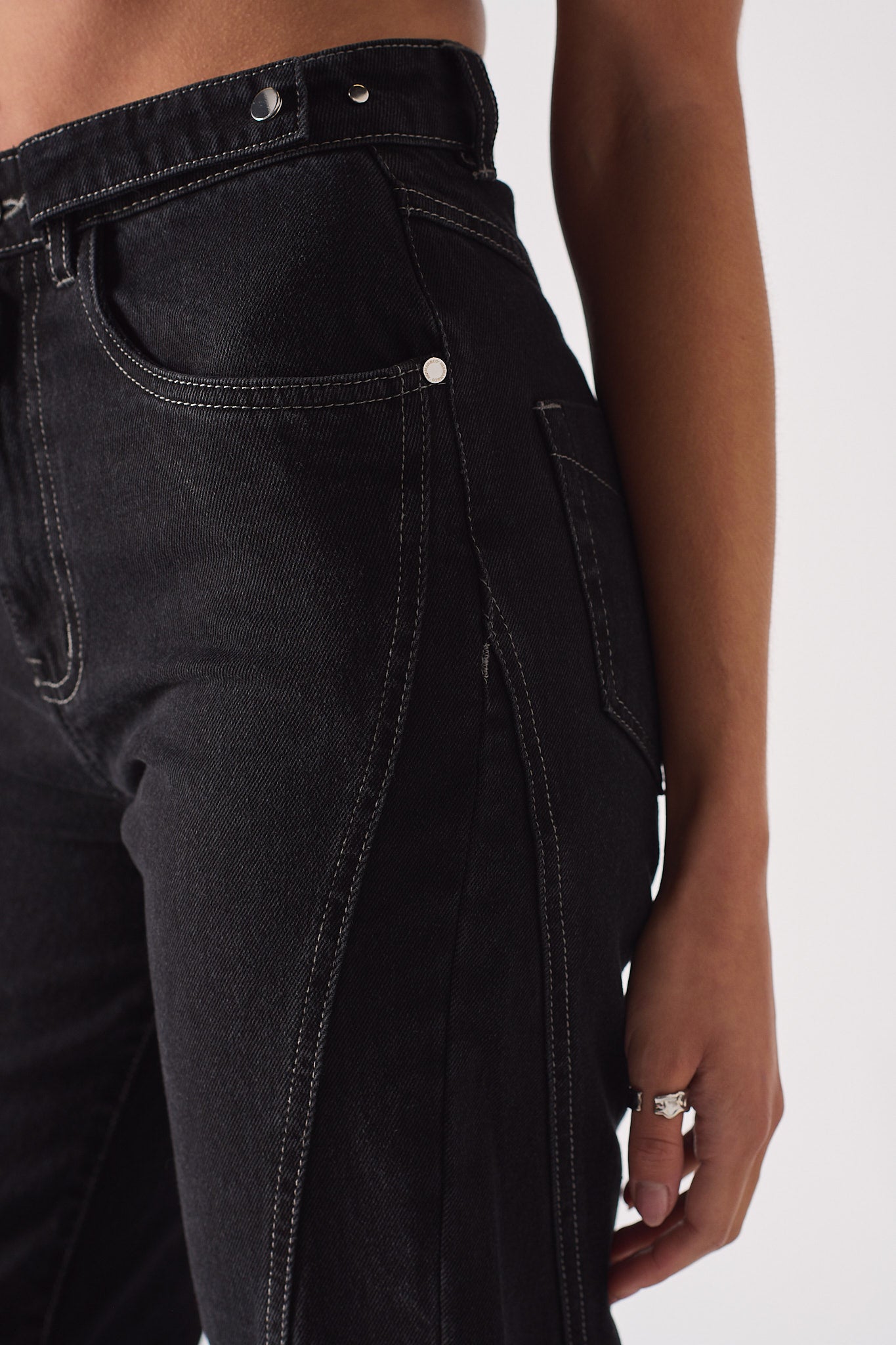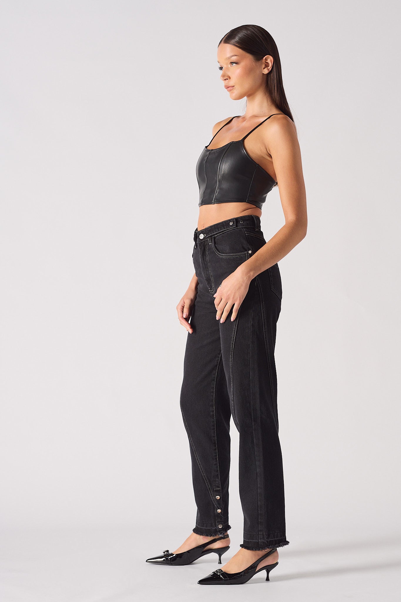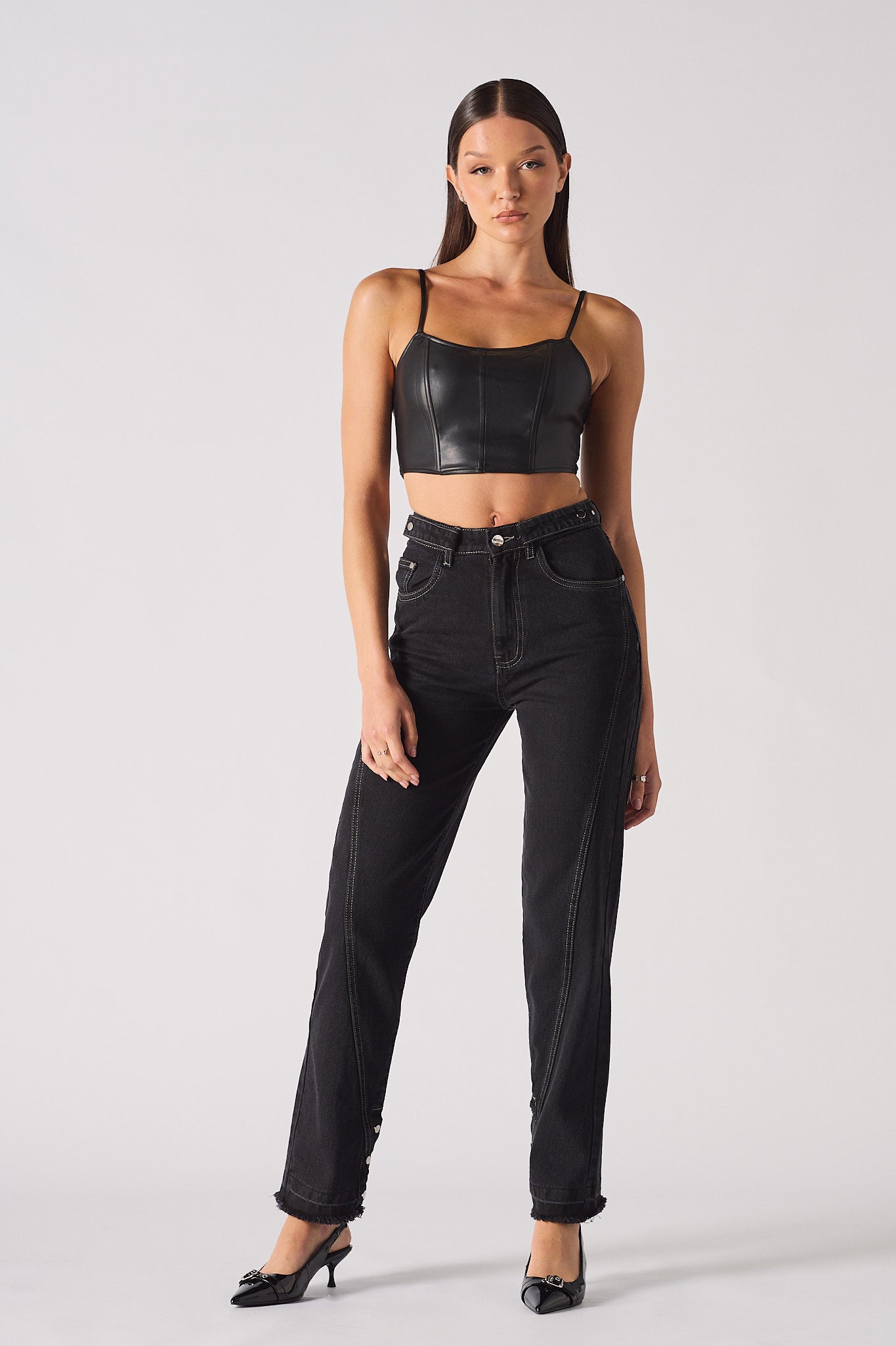 HIGH WAISTED STRAIGHT LEG JEANS - BLACK