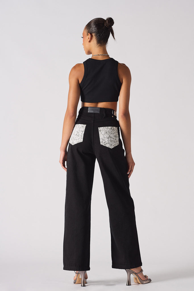 WIDE LEG BAGGY JEANS - BLACK WASH