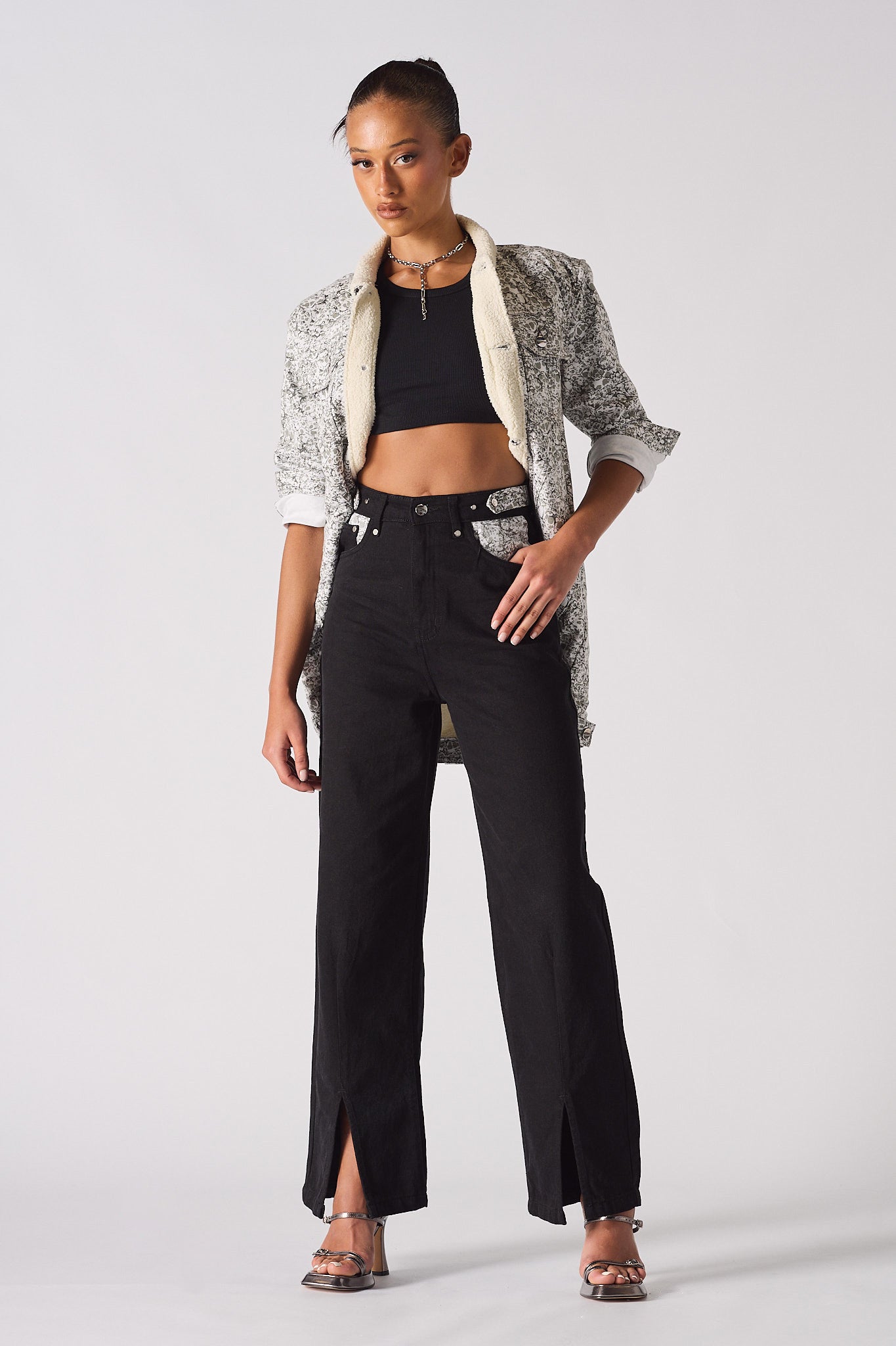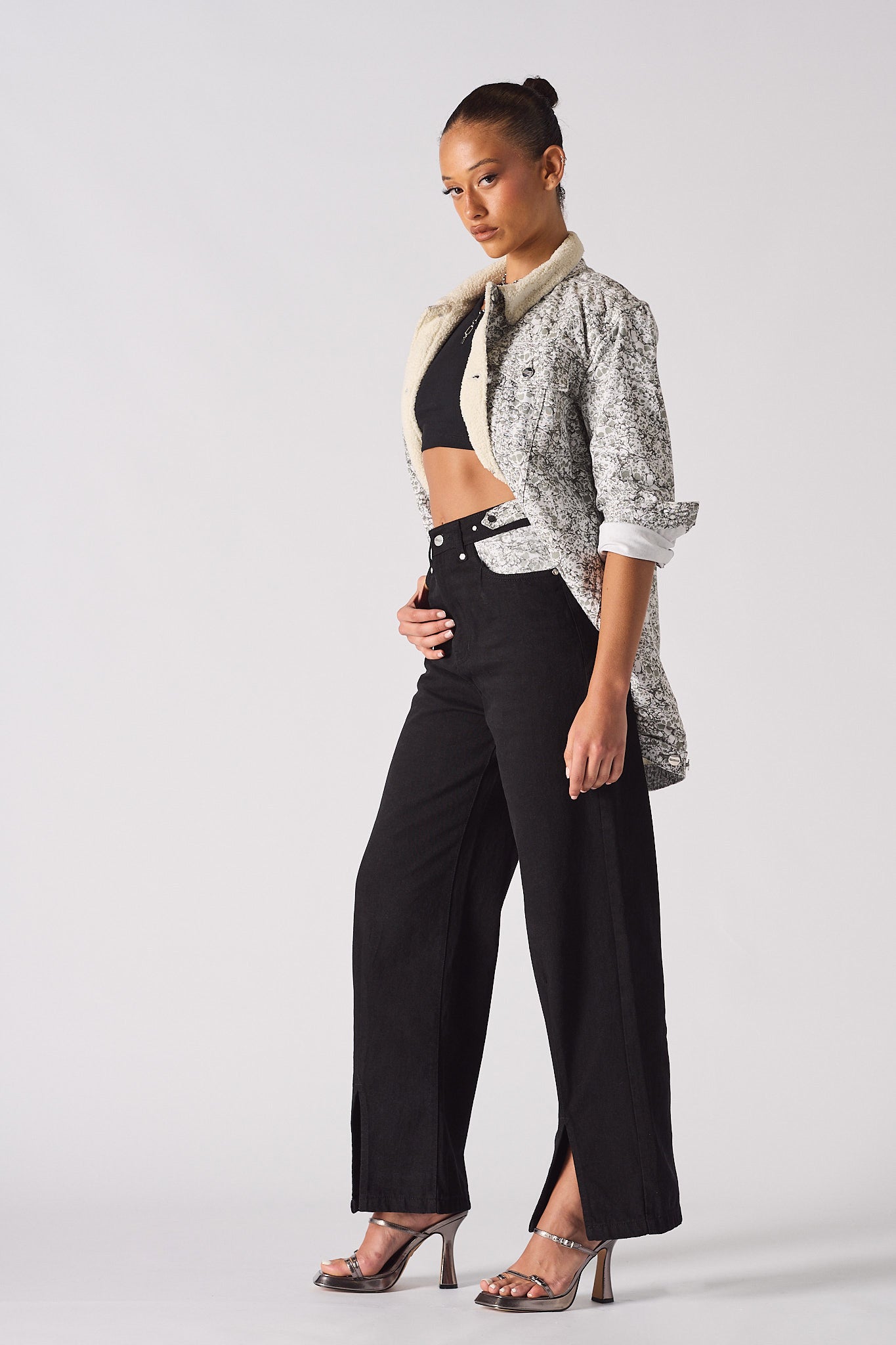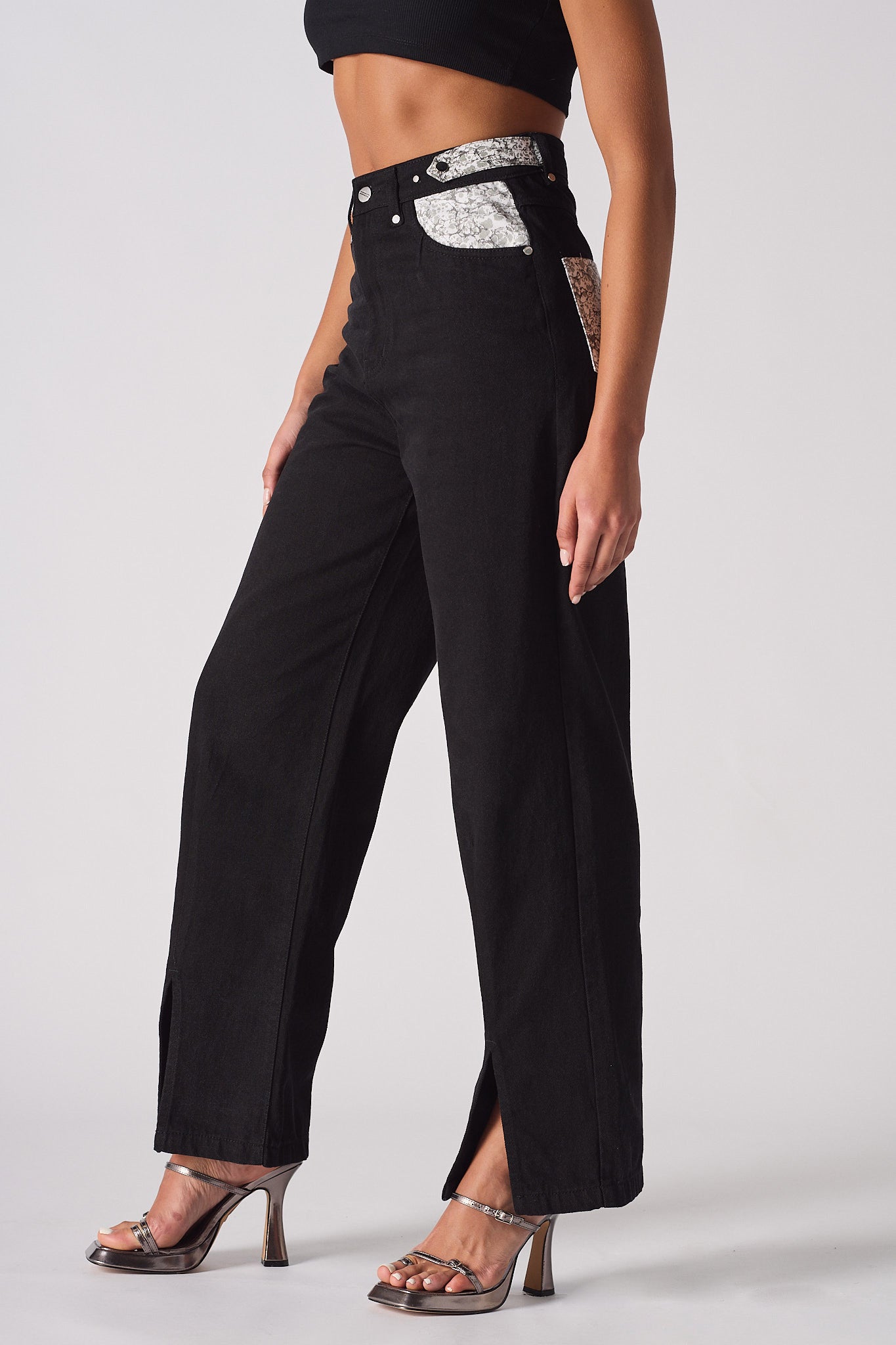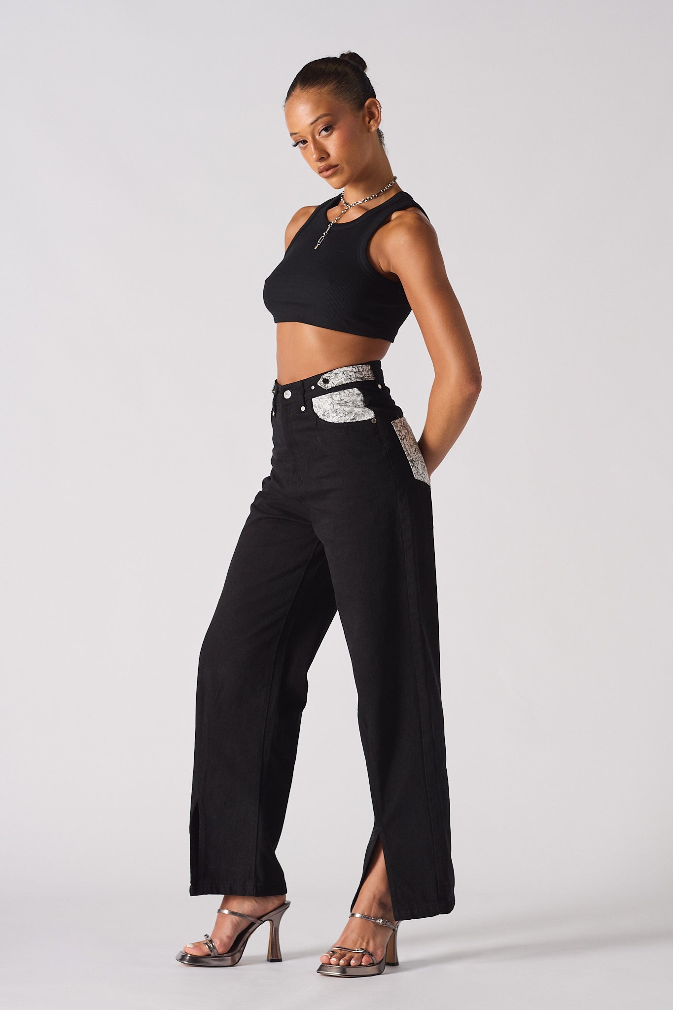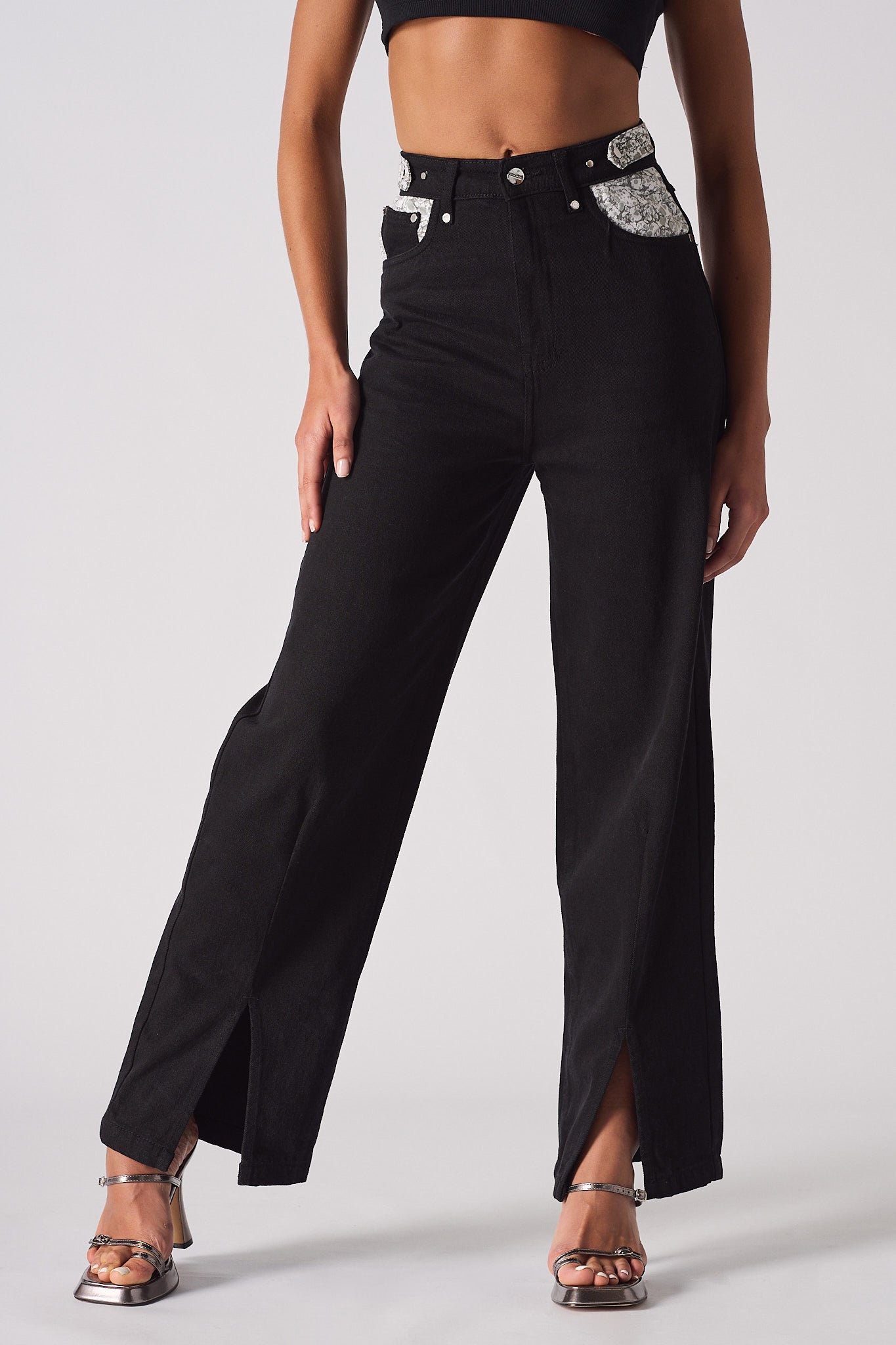These baggy jeans are perfect for a modern, trendy look and will give your casual wardrobe a facelift. Made from premium black wash denim, and feature internal waistband adjusters for a perfect fit. The wide leg silhouette and unique split hem style make these jeans super comfy and luxurious. Plus, the printed pockets add a touch of personality. Dress them up or down – however you wear black wash baggy jeans, you're sure to turn heads!
