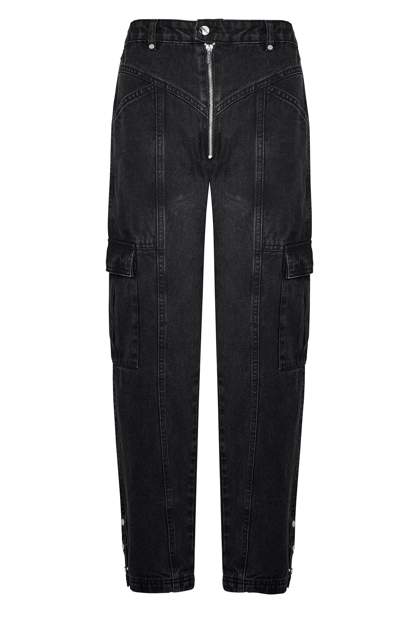 - x3 silver poppers to out seam of hem