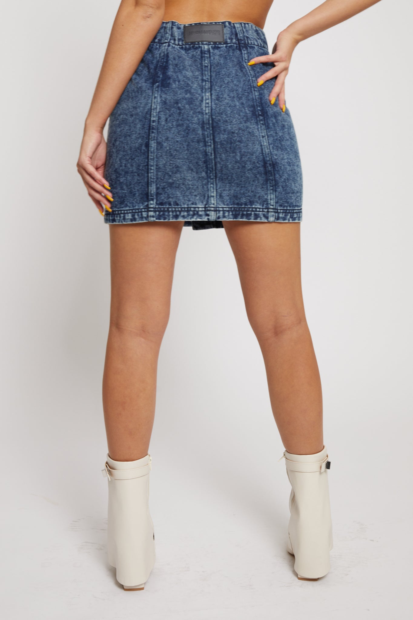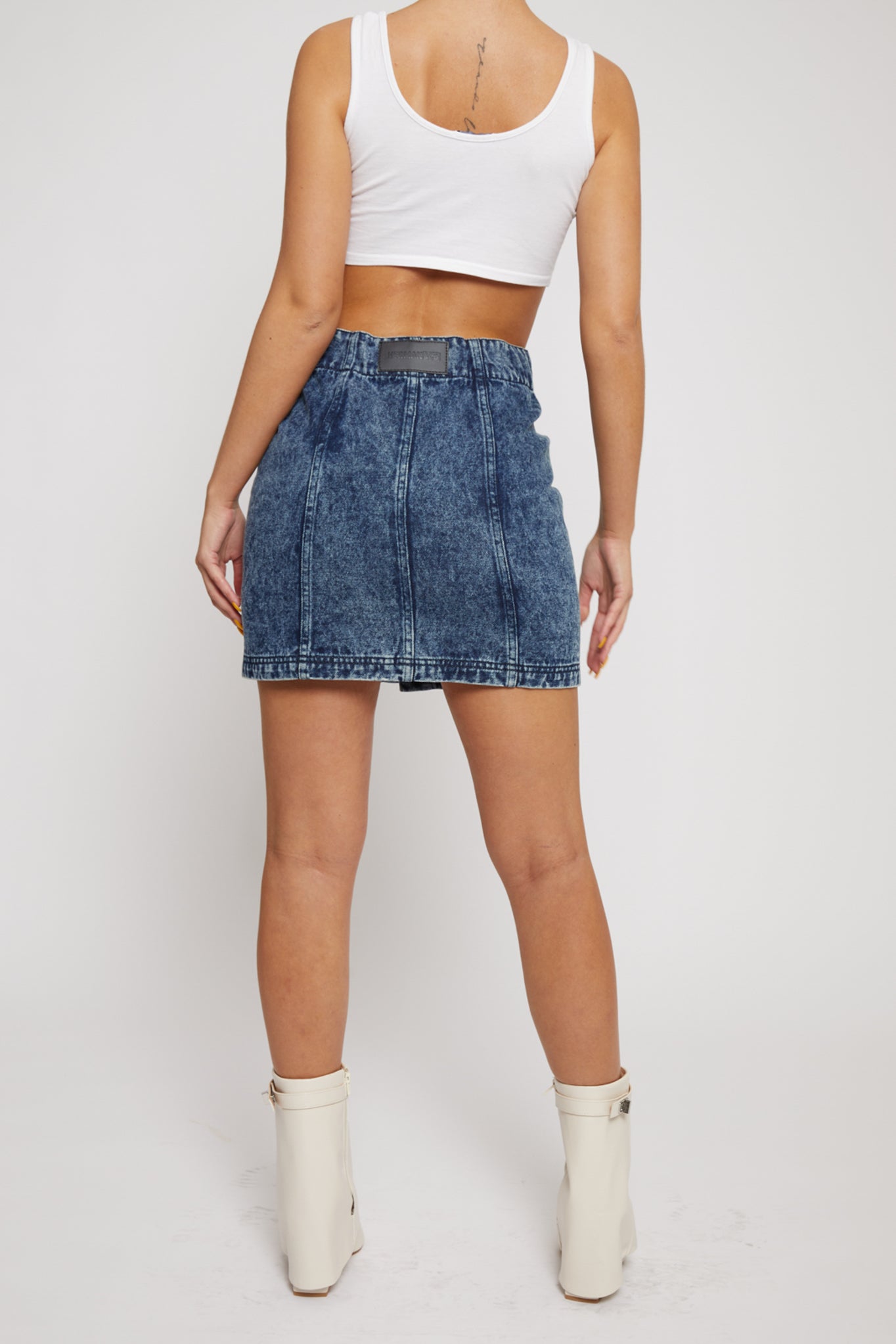 BLUE ACID WASH DENIM SKIRT- NAVY BLUE