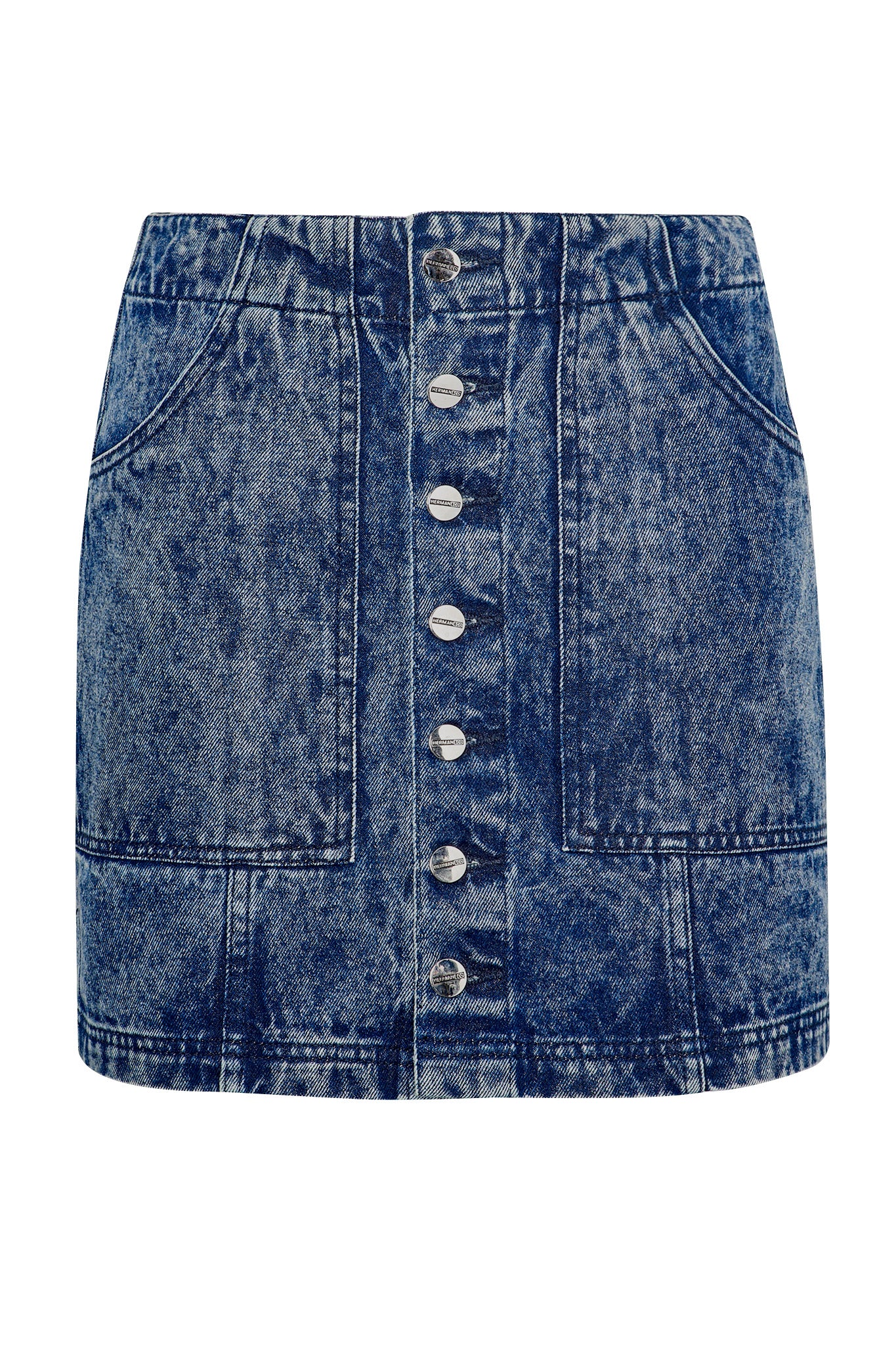 Step up your denim game with this blue acid wash skirt. Made from 100% cotton. The shank opening to the front and seam stitched detailing add a touch of attitude, while the internal waistband adjuster ensures the perfect fit. Front patch pockets complete the look, making it perfect for teaming with jackets and tops.