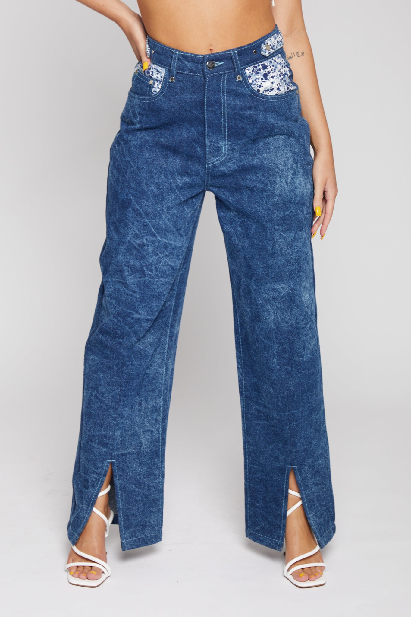 Say hello to your new faves – printed wide leg jeans! These premium jeans are made from dark blue acid wash denim, and they’re 100% cotton for a super comfy fit. With their wide leg silhouette and wide fit, they’re perfect for nailing that effortlessly cool look. And we love the front split hem – it adds a touch of edge. Internal waistband adjusters let you find the perfect fit. Whether you dress them up or down, dark blue acid wash jeans are sure to become a staple in your wardrobe.