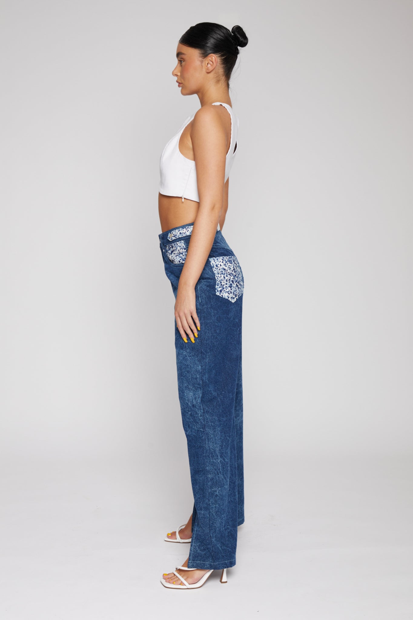 HIGH WAISTED WIDE LEG JEANS - NAVY BLUE