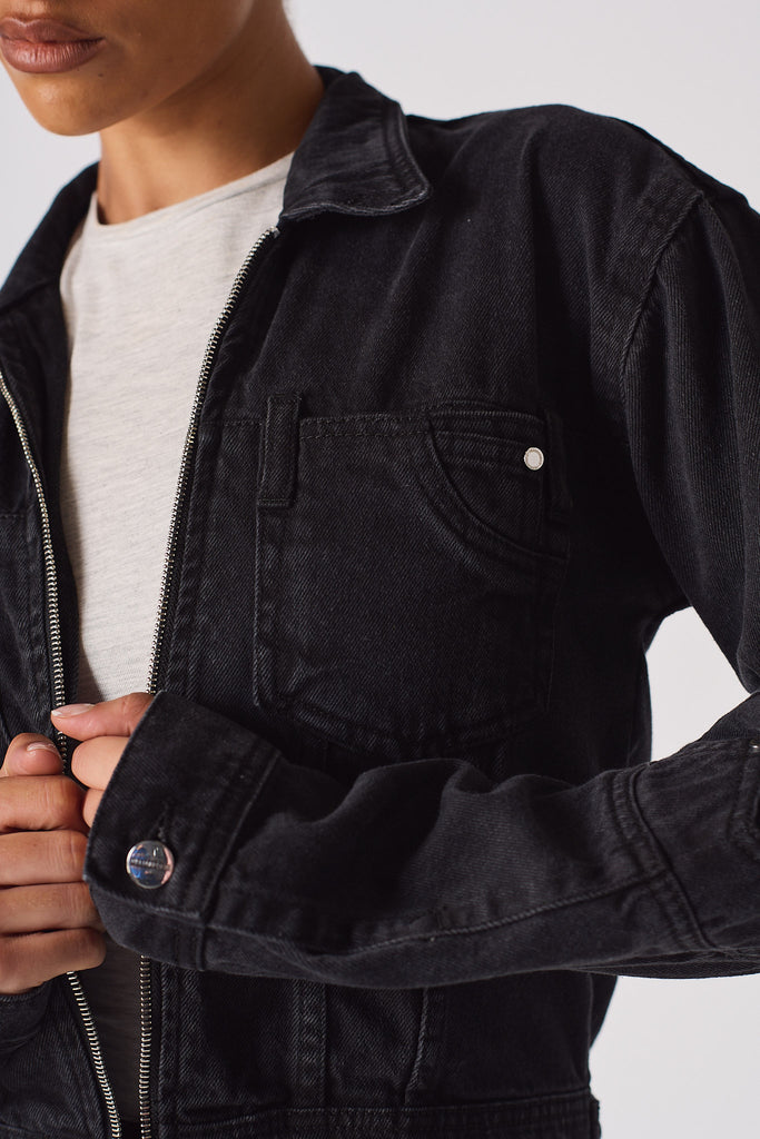 Coin pocket regular jacket is perfect for adding some edge to your casual wardrobe. The zipper front opening and coin pocket design detailing give this style some extra attitude. Black wash gives it that lived-in look we all love. Pair this jacket with some ripped jean and a basic tee for a great everyday look. You can also dress it up with a dress or skirt and some heels. Either way, you'll look great! So what are you waiting for? Add this jacket to your wardrobe and rock it your way!