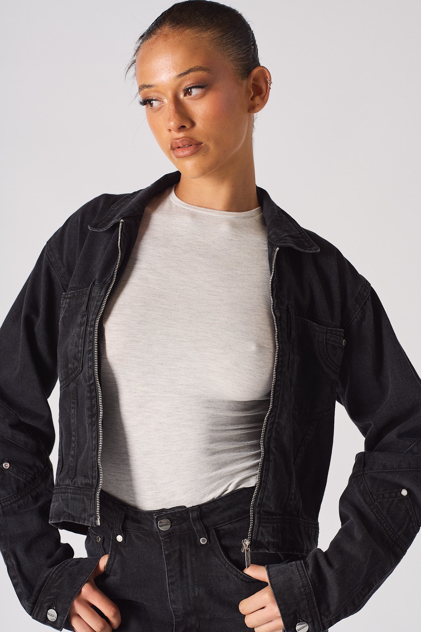 Coin pocket regular jacket is perfect for adding some edge to your casual wardrobe. The zipper front opening and coin pocket design detailing give this style some extra attitude. Black wash gives it that lived-in look we all love. Pair this jacket with some ripped jean and a basic tee for a great everyday look. You can also dress it up with a dress or skirt and some heels. Either way, you'll look great! So what are you waiting for? Add this jacket to your wardrobe and rock it your way!
