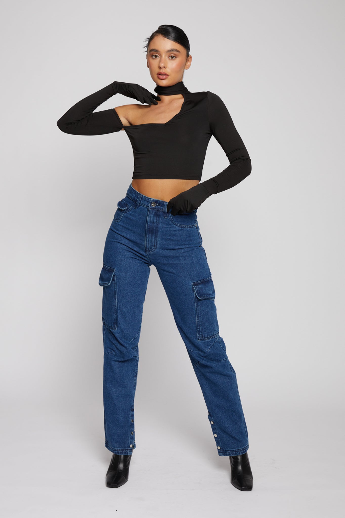 These straight leg jeans will add much-needed fun into your casual style with their high-waisted, relaxed silhouette and dark wash indigo denim. Made from 100% cotton for unbeatable comfort, these jeans also feature knee darts for a modern touch and cargo pocket to the side of the legs. For an adjustable fit, they have internal waistband adjusters – perfect for when you want to wear them just a little bit lower on your waist. Finished with three silver poppers to the hem, these jeans are sure to become a firm favourite in your wardrobe.