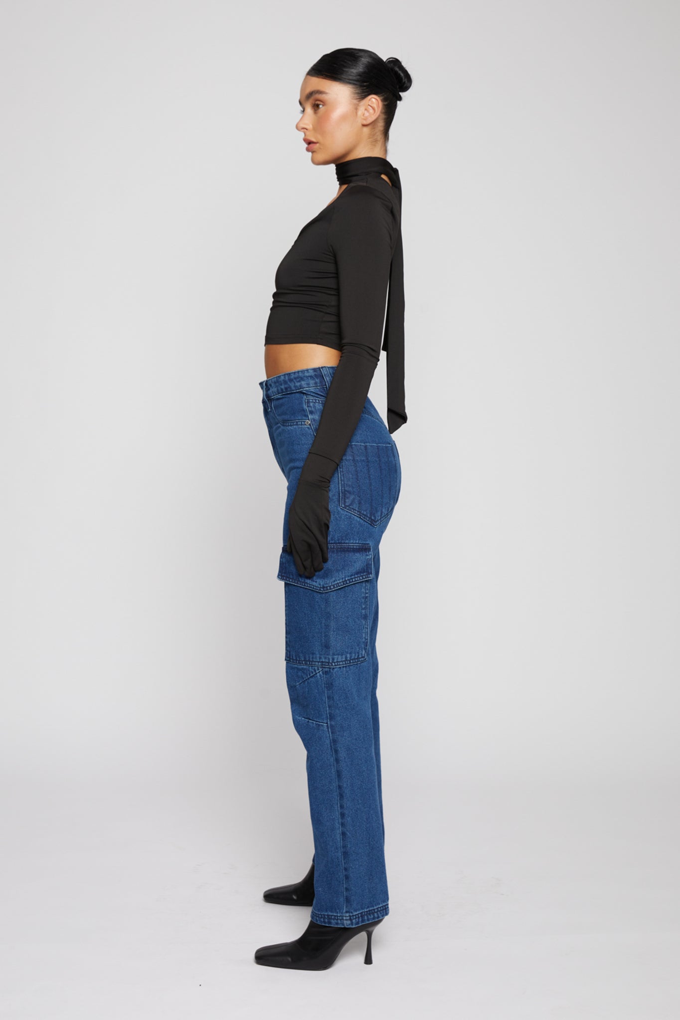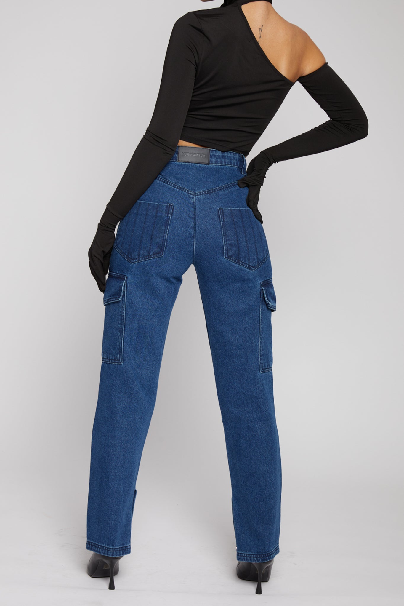 - Dark wash indigo denim