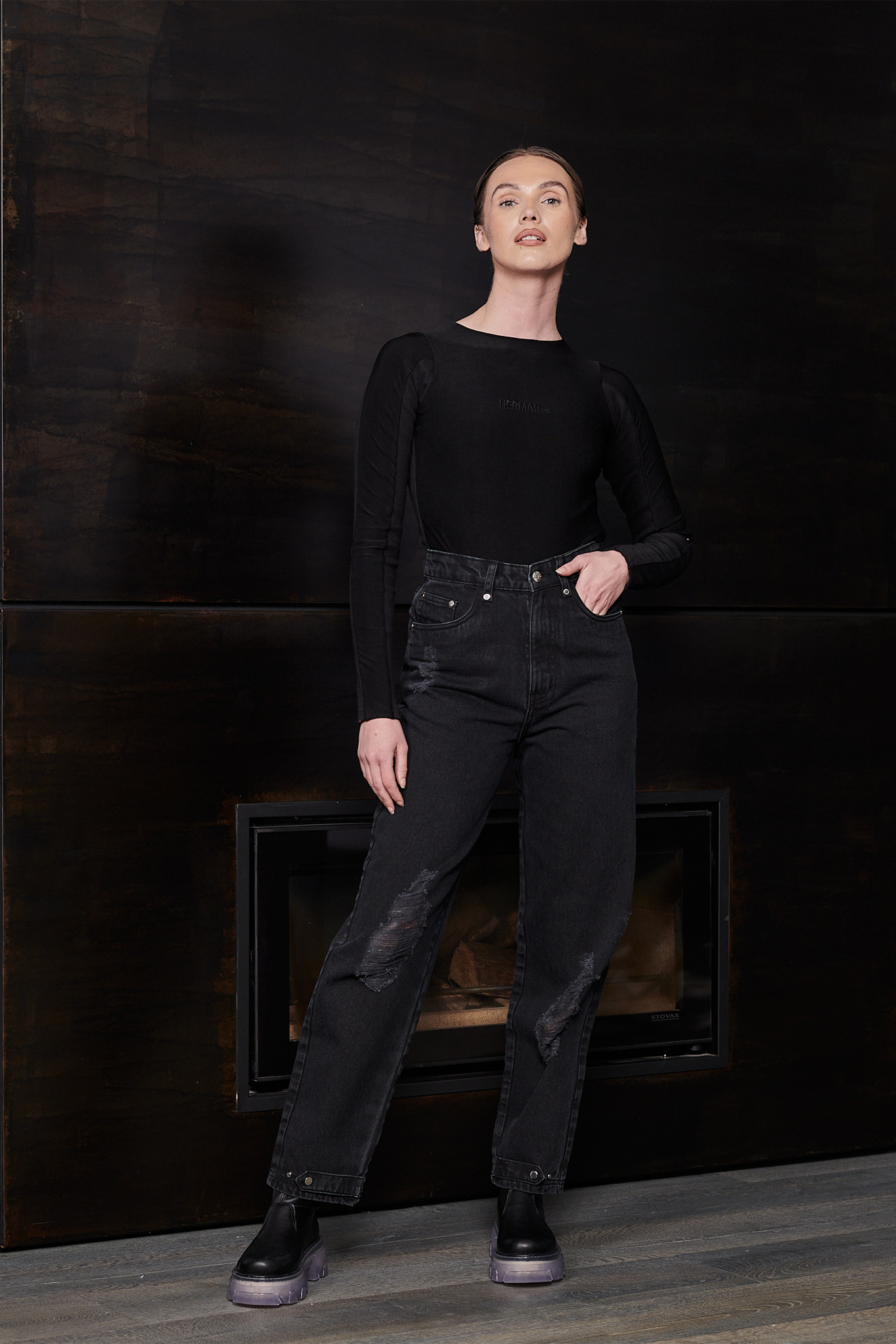 Looking for a stylish, relaxed alternative to your go-to jeans? Our black wash jeans are perfect for giving your everyday style a trendy update. With distressed detailing and a comfortable straight leg fit, these jeans are sure to become a favourite in your wardrobe. Plus, the internal waistband adjusters make them super easy to personalize to your own flattering figure. So why wait? Add these versatile distressed jeans to your new season's wardrobe today.