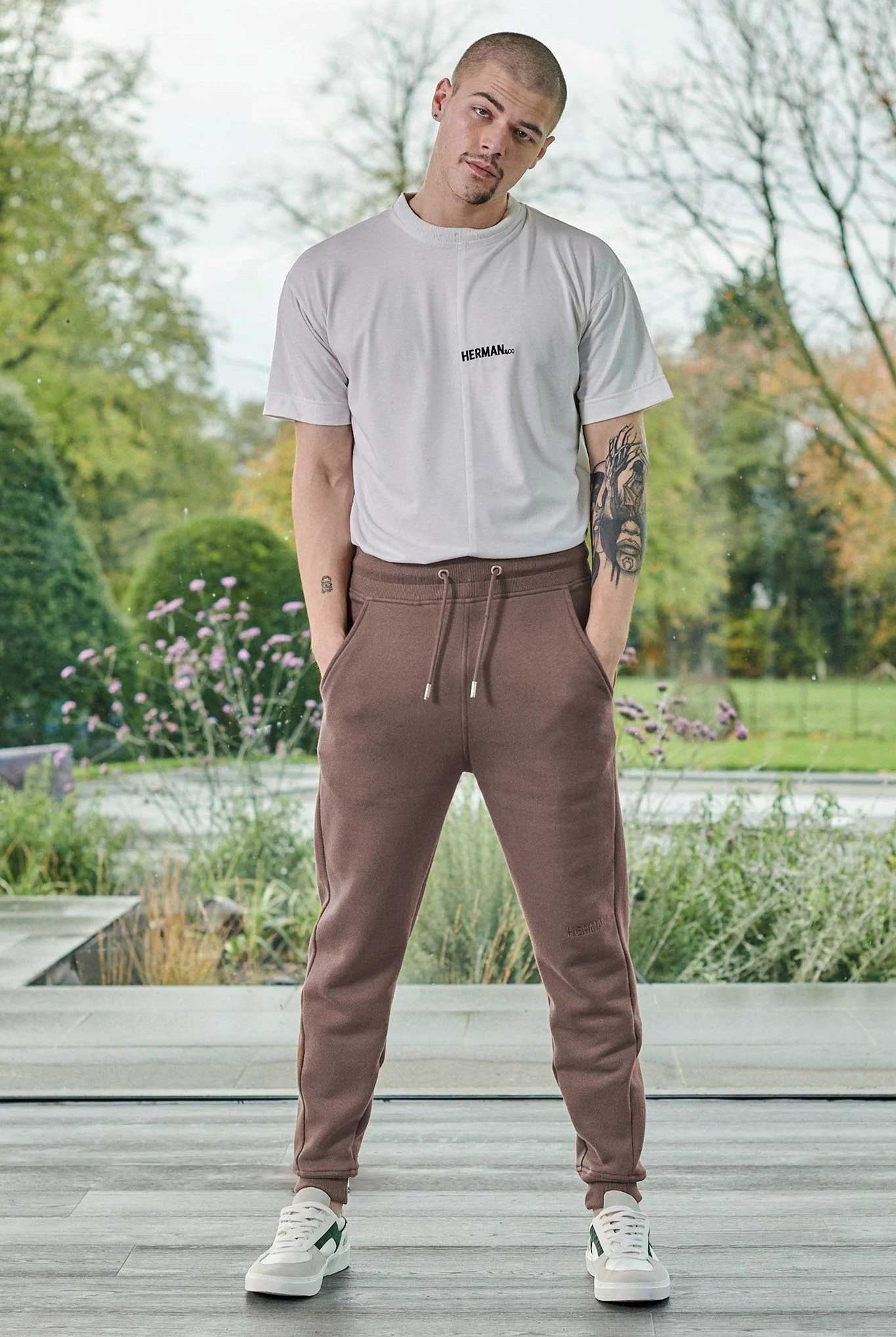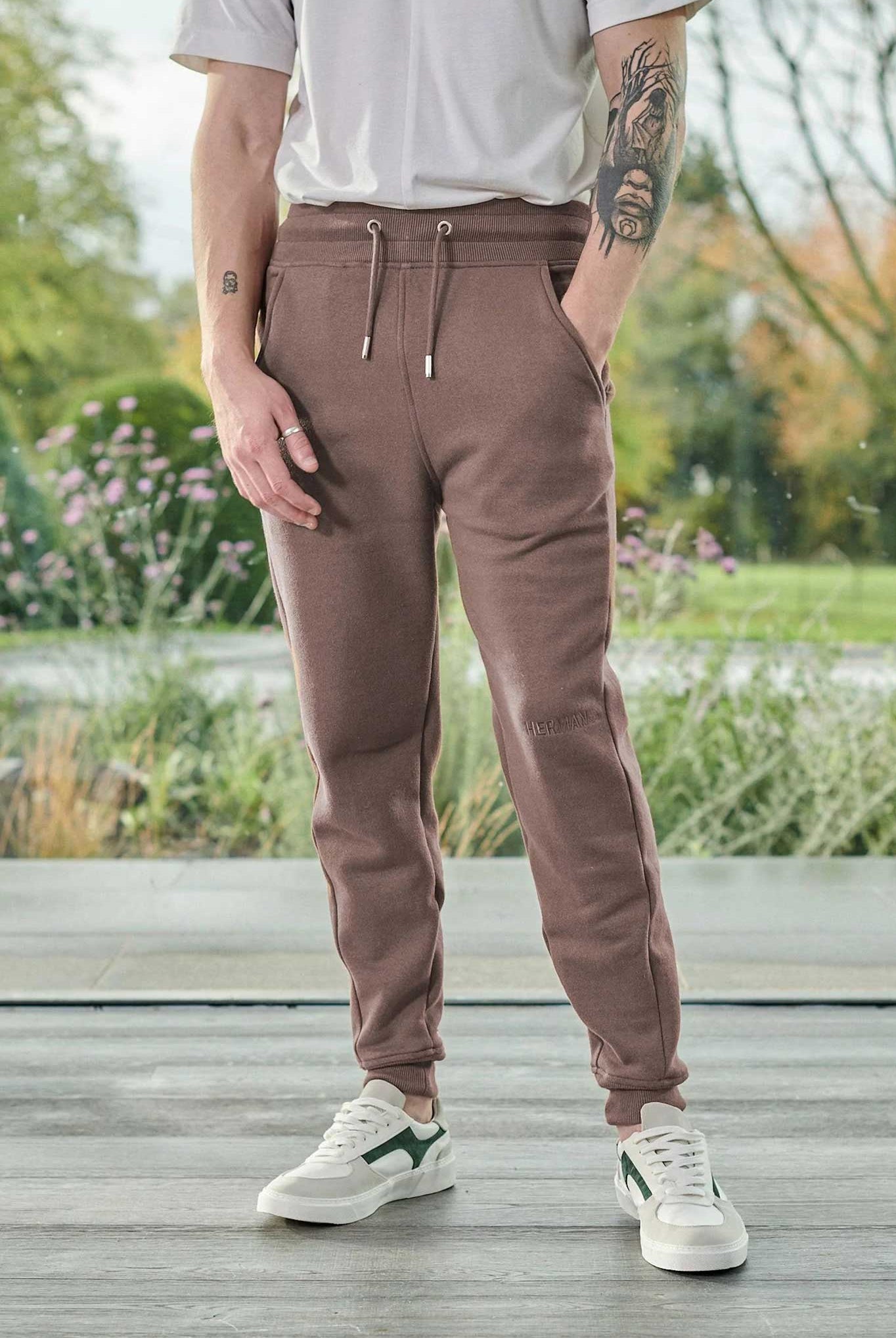 - Tapered fit with rib cuff and waistband