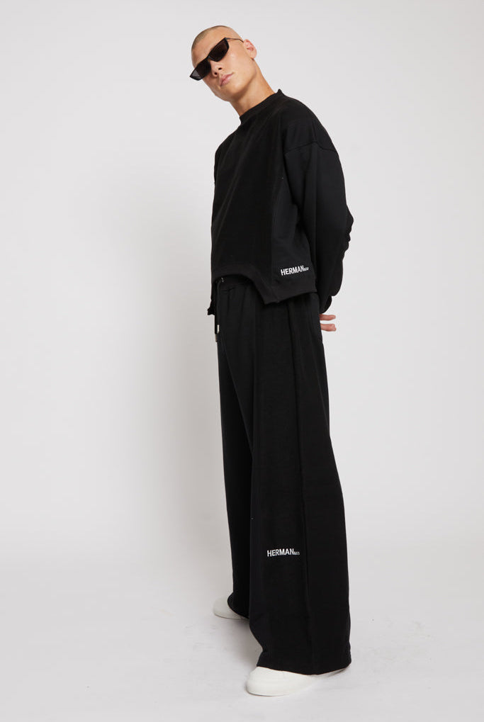 Our Men's Dark Navy Wide Leg Joggers is a perfect addition to your loungewear wardrobe. Made with high-quality polycotton for luxurious comfort and style. Featuring a wide leg fit, brushback quality fabric, and seam detailing, these joggers are sure to become your new favourite go-to. Plus, it has patch pockets to the back, and side slip pockets to the front that are best for storing all your essentials. Whether you're relaxing at home or out and about, our dark navy joggers are sure to keep you feeling comfortable and looking great.
