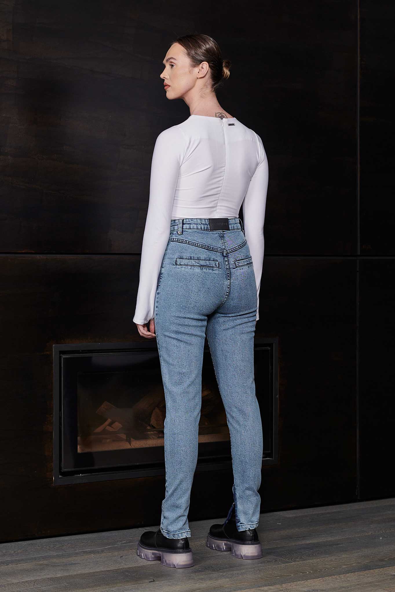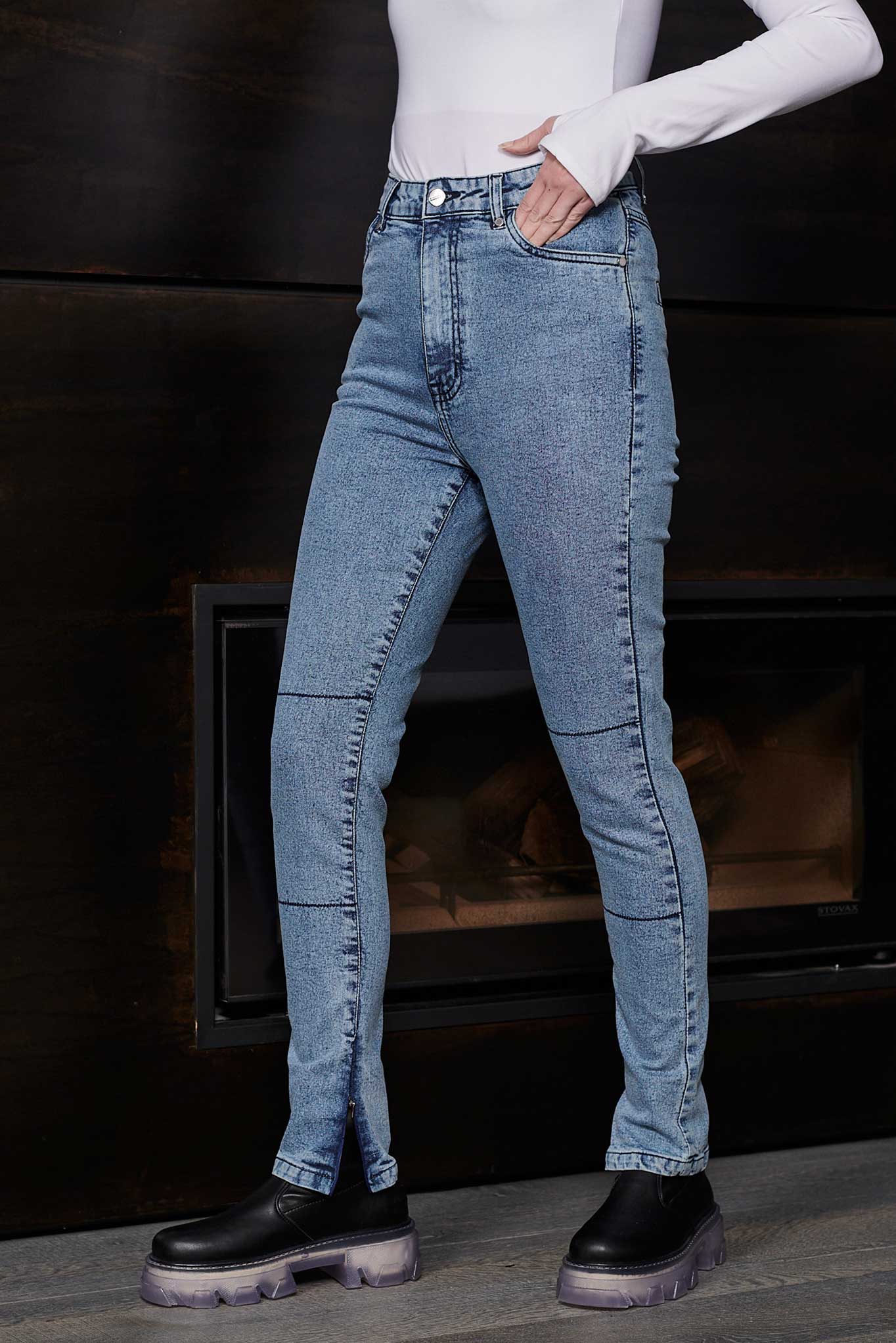 Introducing flattering high wasited skinny jean to take you from coffee dates to evening drinks in style. Made from premium denim fabric, this figure-hugging jean comes in a mid wash and features chic knee stitch detailing and an invisible zipper to hem for over footwear styling. The high waisted cut flatters your waistline, while the internal waistband adjusters ensure the perfect fit. For a sleek look, simply pair mid wash skinny jean with your favourite blouse or tee.