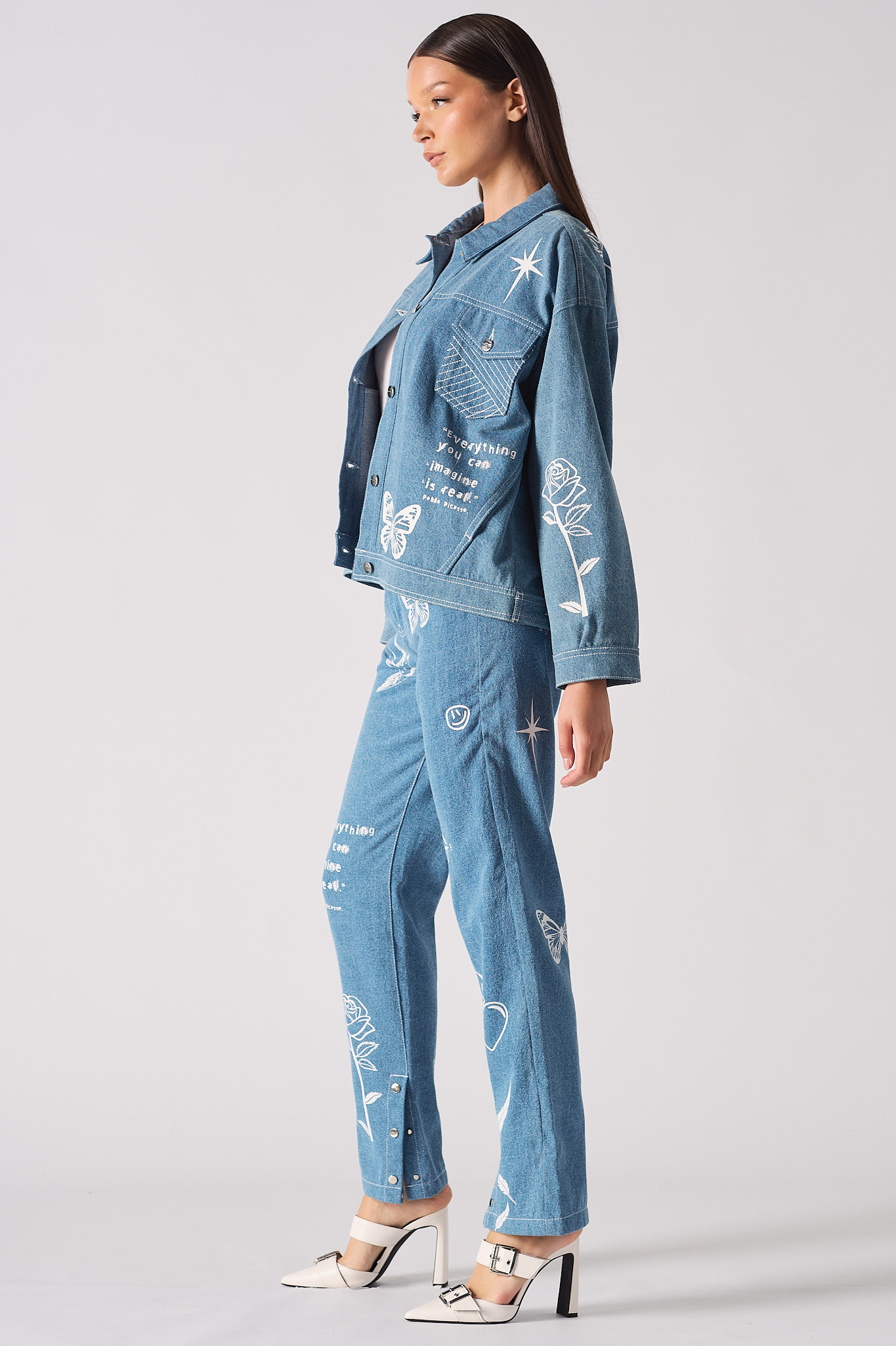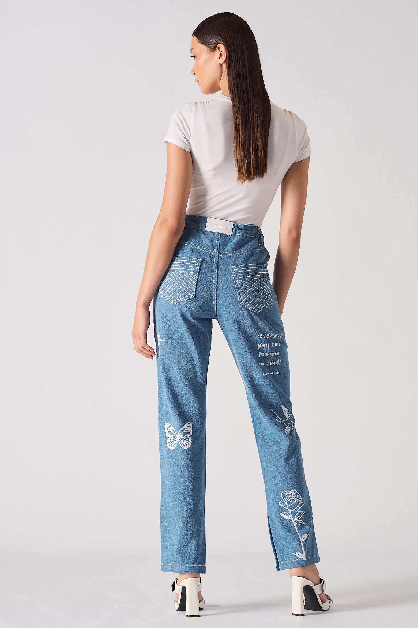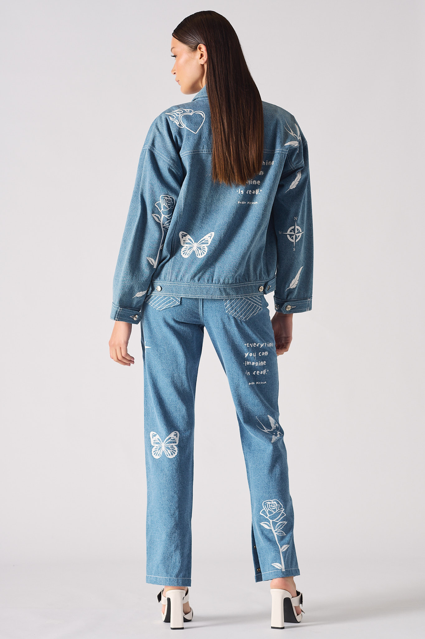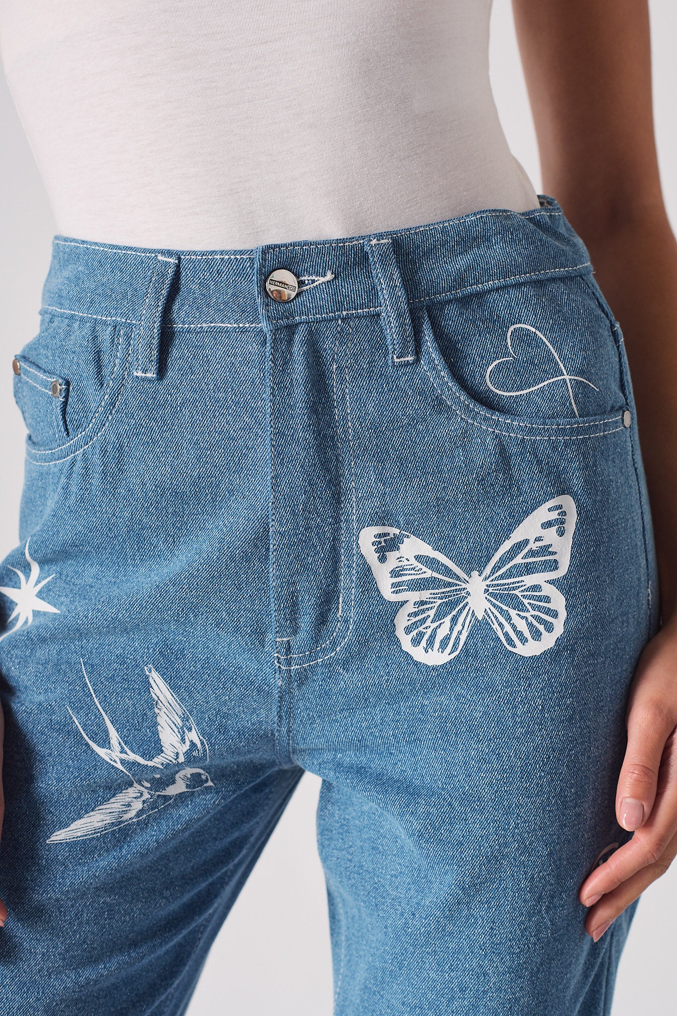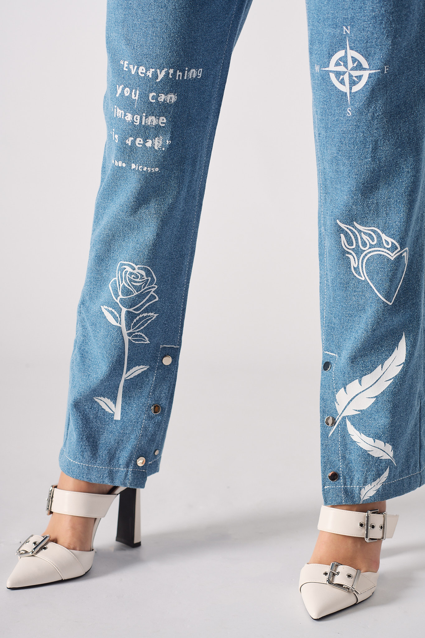 Take your look to brand new heights with this must-have jean. The comfortable fit and modern silhouette combine to create a stylish and flattering look. With a versatile mid wash, tattoo print denim straight leg jean can be dressed up or down for any occasion. Pair it with your favourite blouse and heels for a night out, or wear it with a tee and sneakers for a casual day around town. No matter how you style it, you'll look and feel your best in this jean. So what are you waiting for? Give tattoo print straight leg jean a try today! You won't be disappointed.