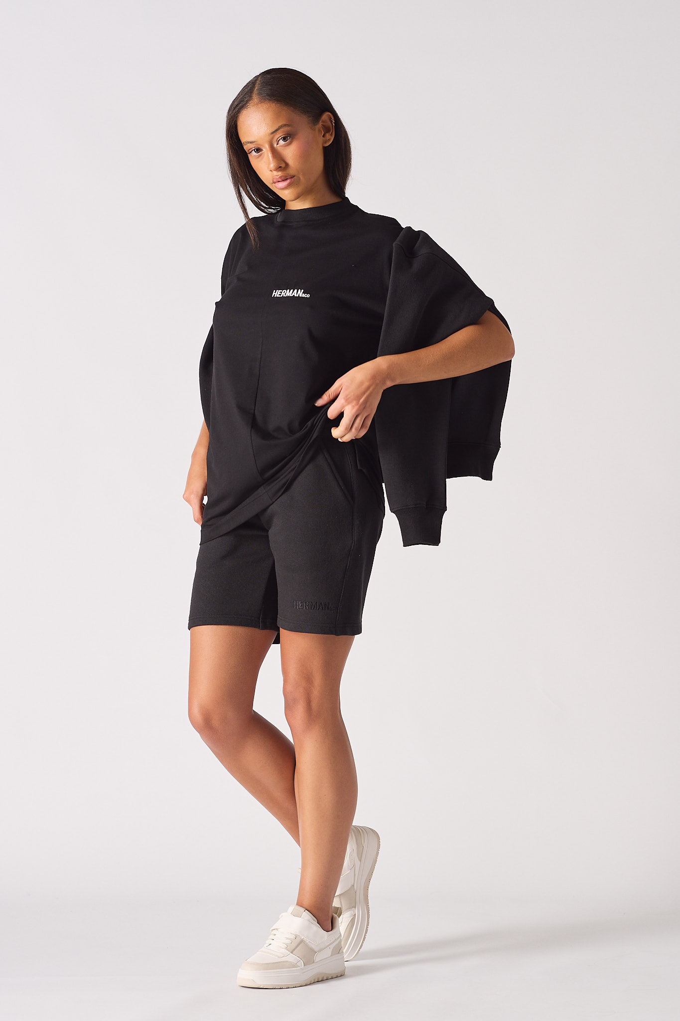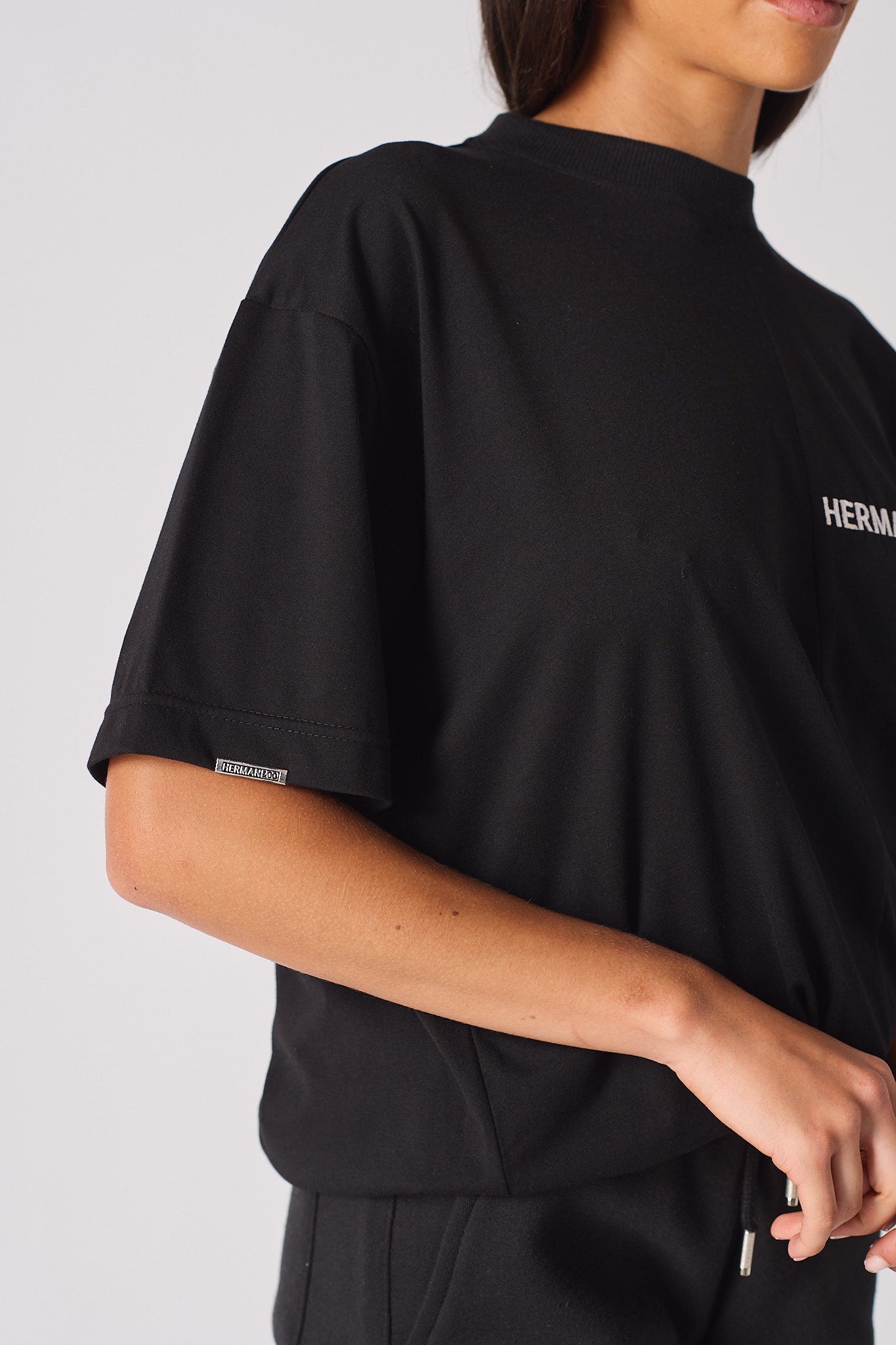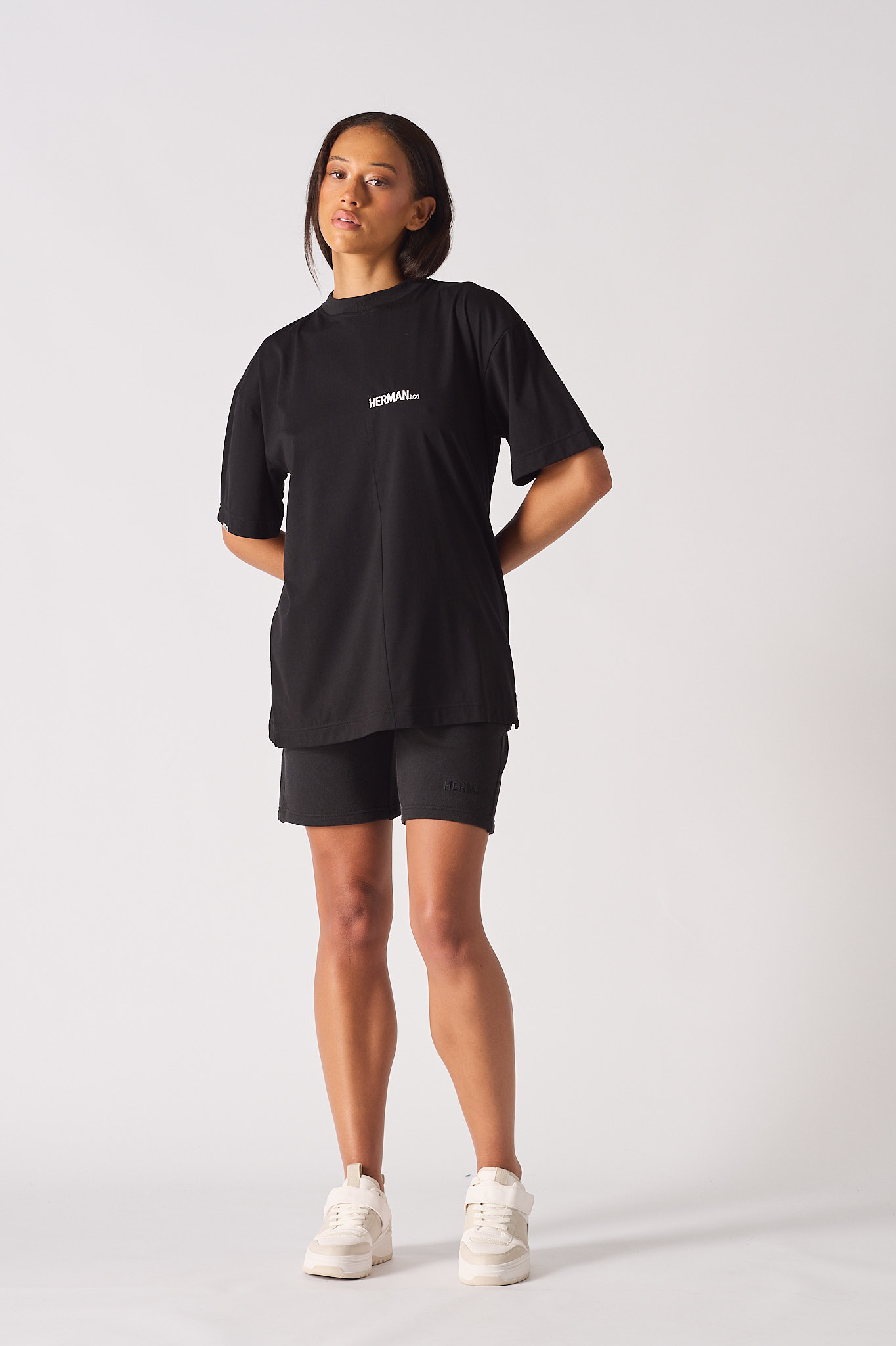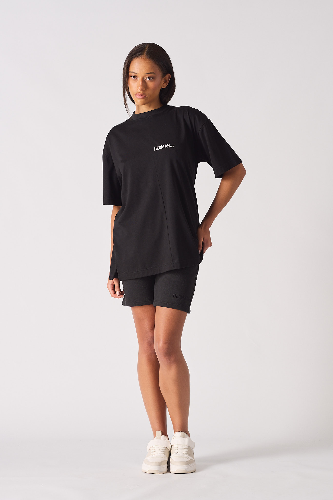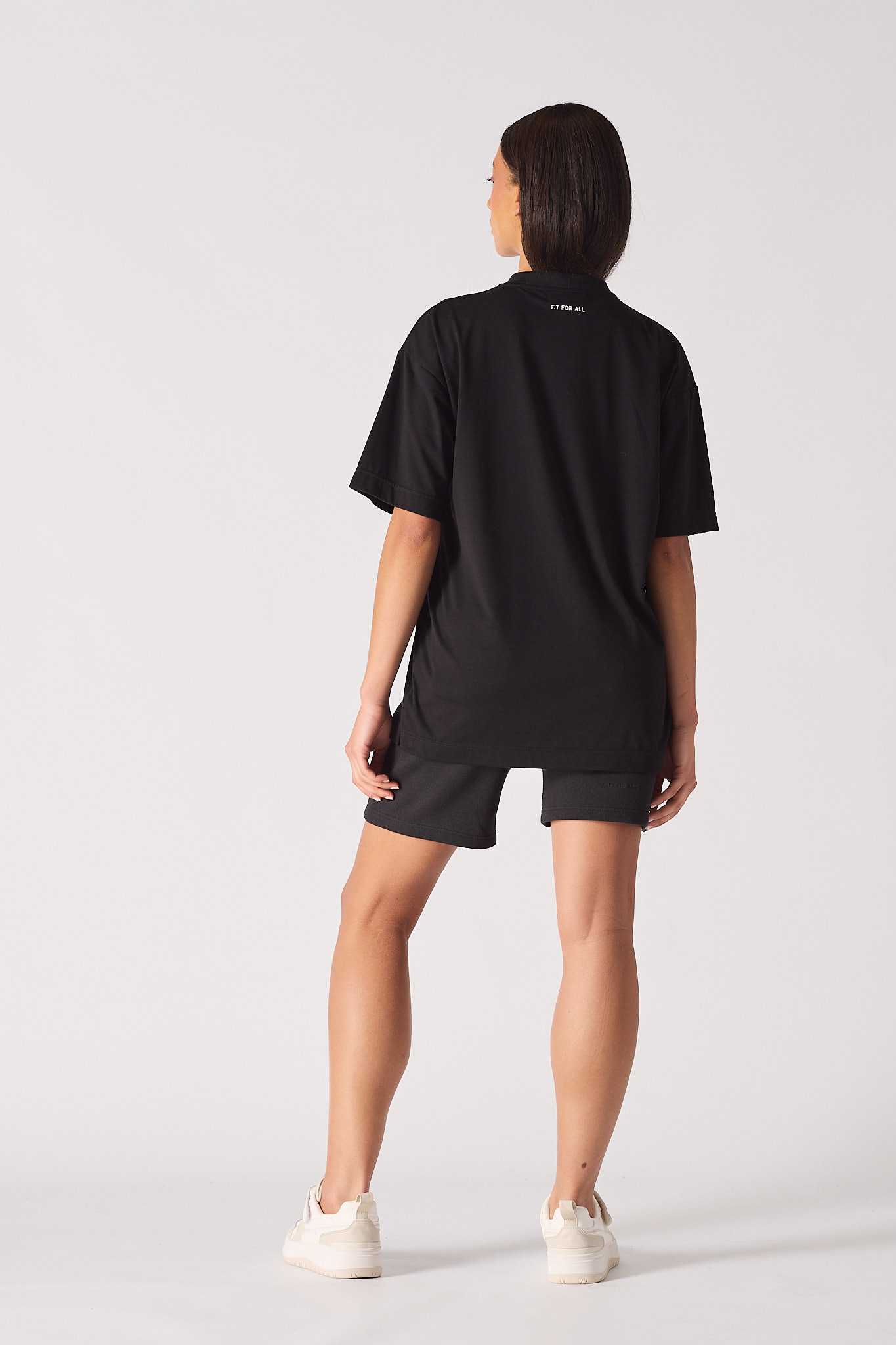 Our basic black women t-shirt is designed with a relaxed and comfortable fit in mind, so you'll always feel your best whether you're running errands or enjoying a night out. The versatile black colour goes with everything, making it easy to incorporate into your existing wardrobe. Plus, the crew neck design provides a flattering look. Made from a soft polycotton blend, this oversized women t-shirt is sure to become one of your favourite go-to pieces.
