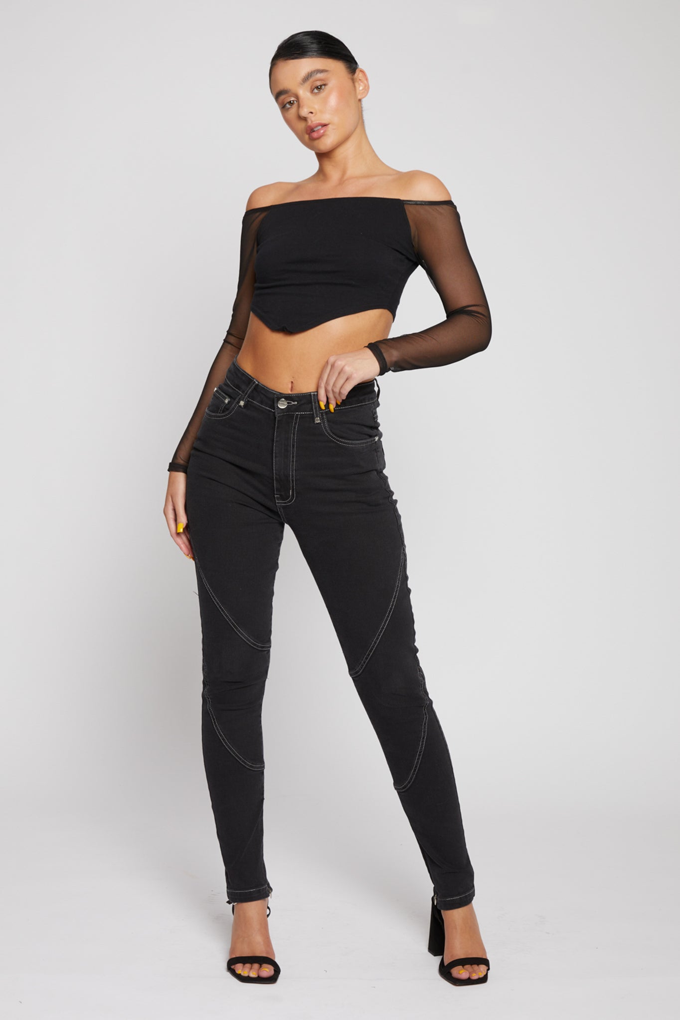 Introducing our black high waisted skinny jeans – the perfect denim for a streamlined figure-flattering look. The high rise style provides extra coverage and support, while the skinny fit hugs your curves for a figure flattering silhouette. Featuring raised seam details and internal waist adjusters, these jeans are luxurious and perfect for adding a classic touch to any outfit. With so many ways to wear them, high waisted skinny jeans are a must-have in any wardrobe. So go ahead and treat yourself to a pair today.