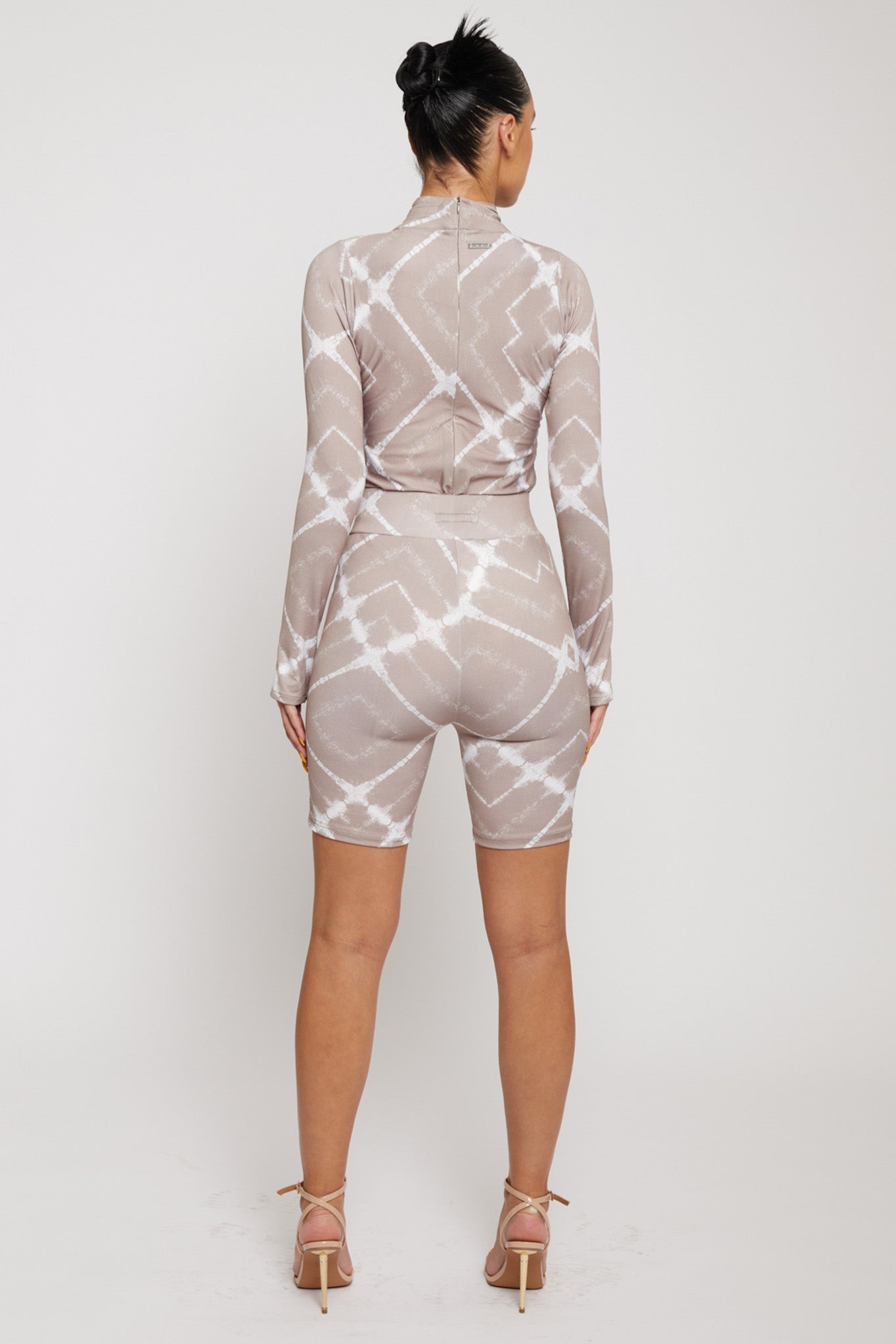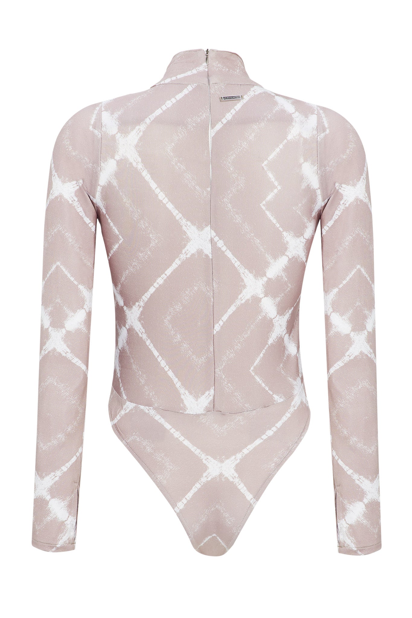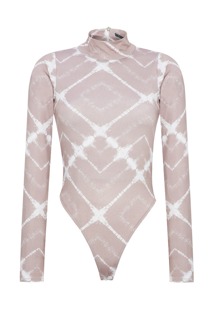 PRINTED HIGH NECK BODYSUIT - TAUPE