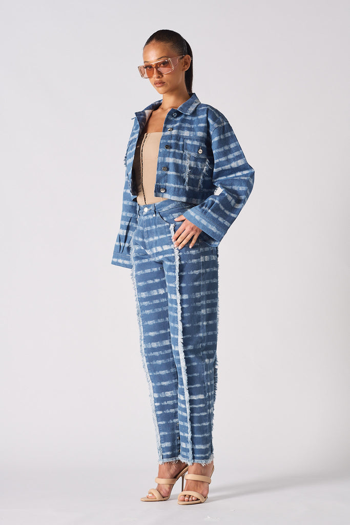 - Blue printed denim