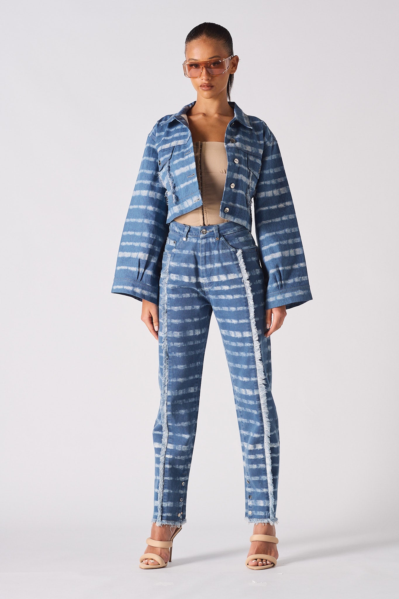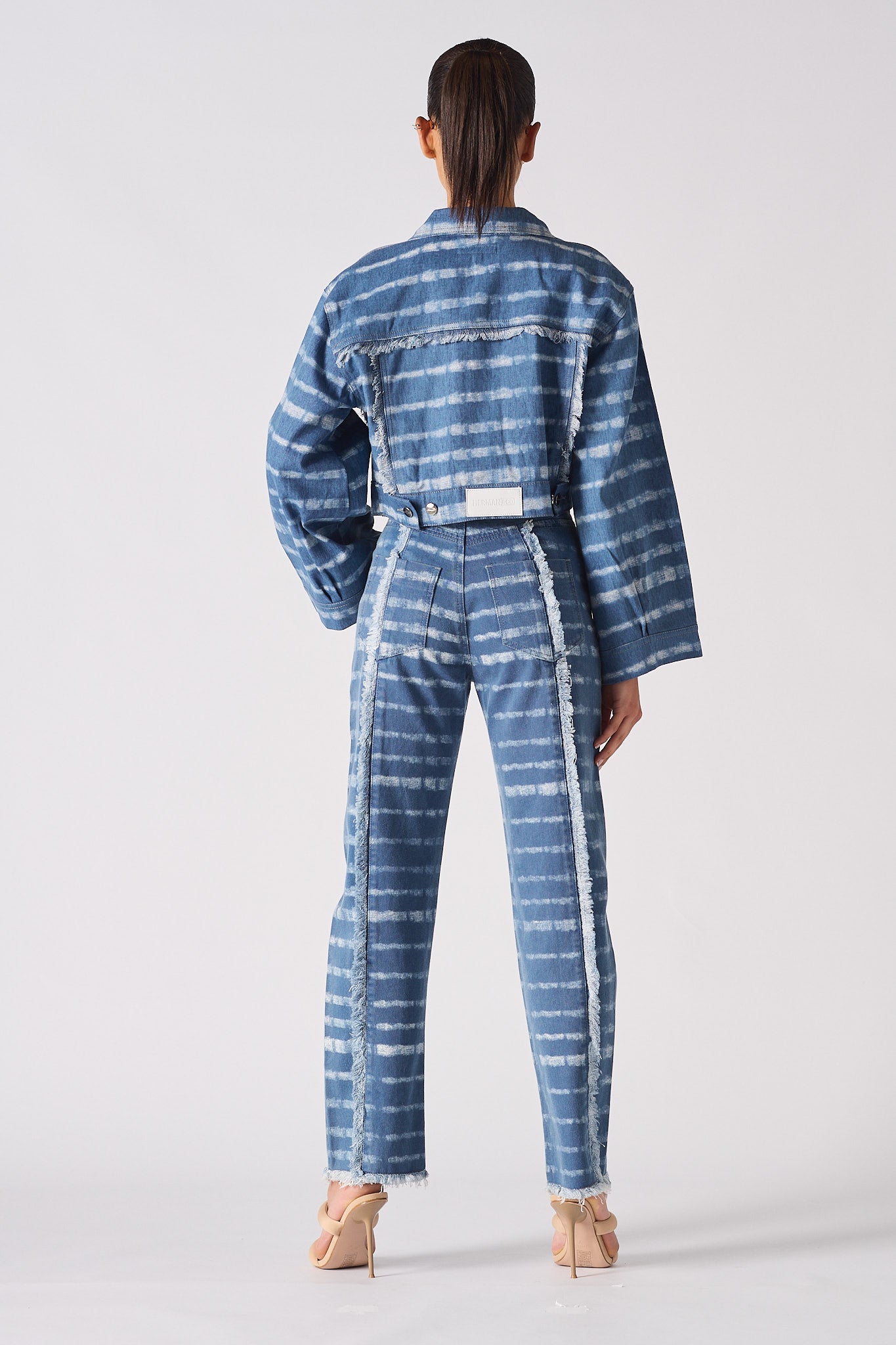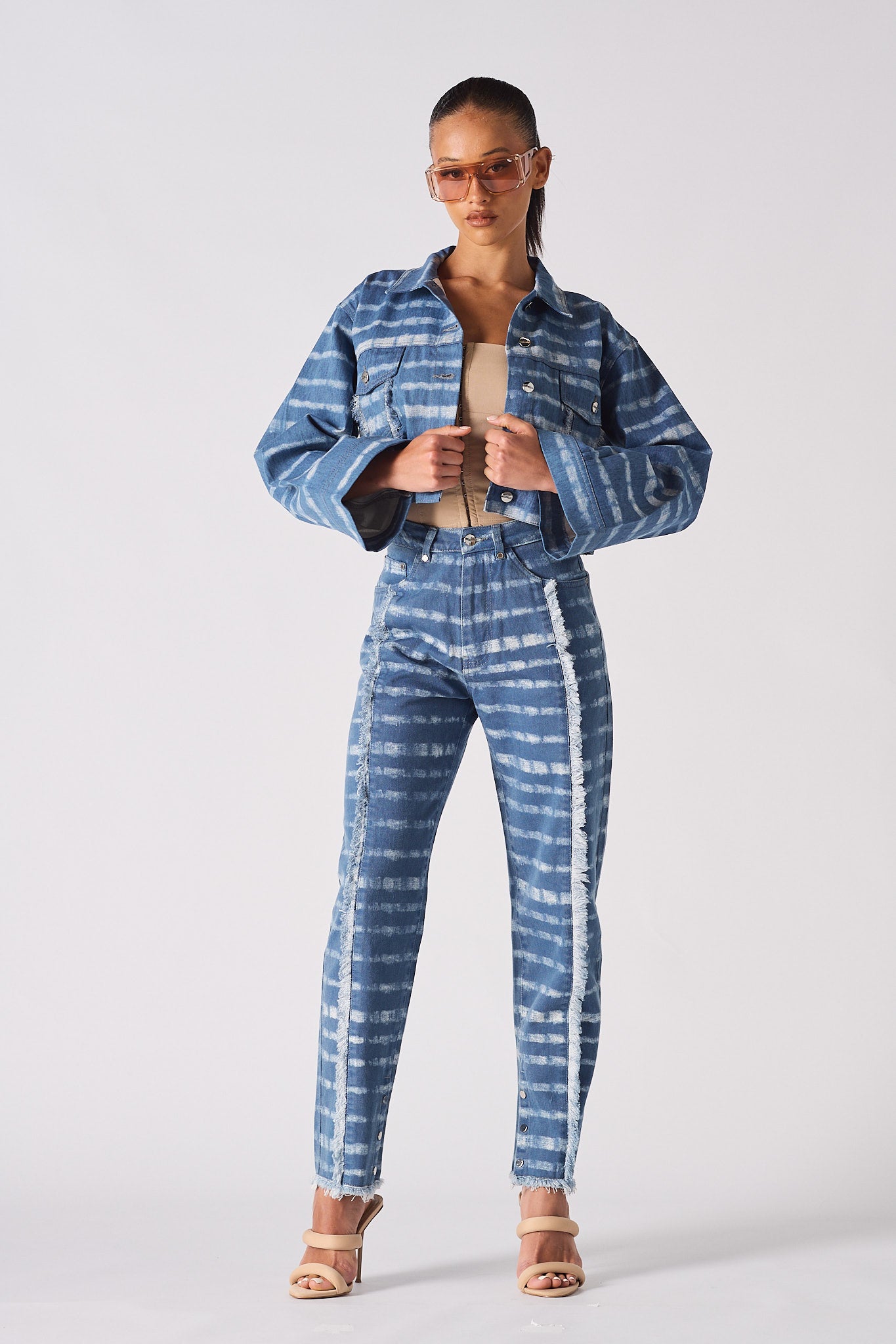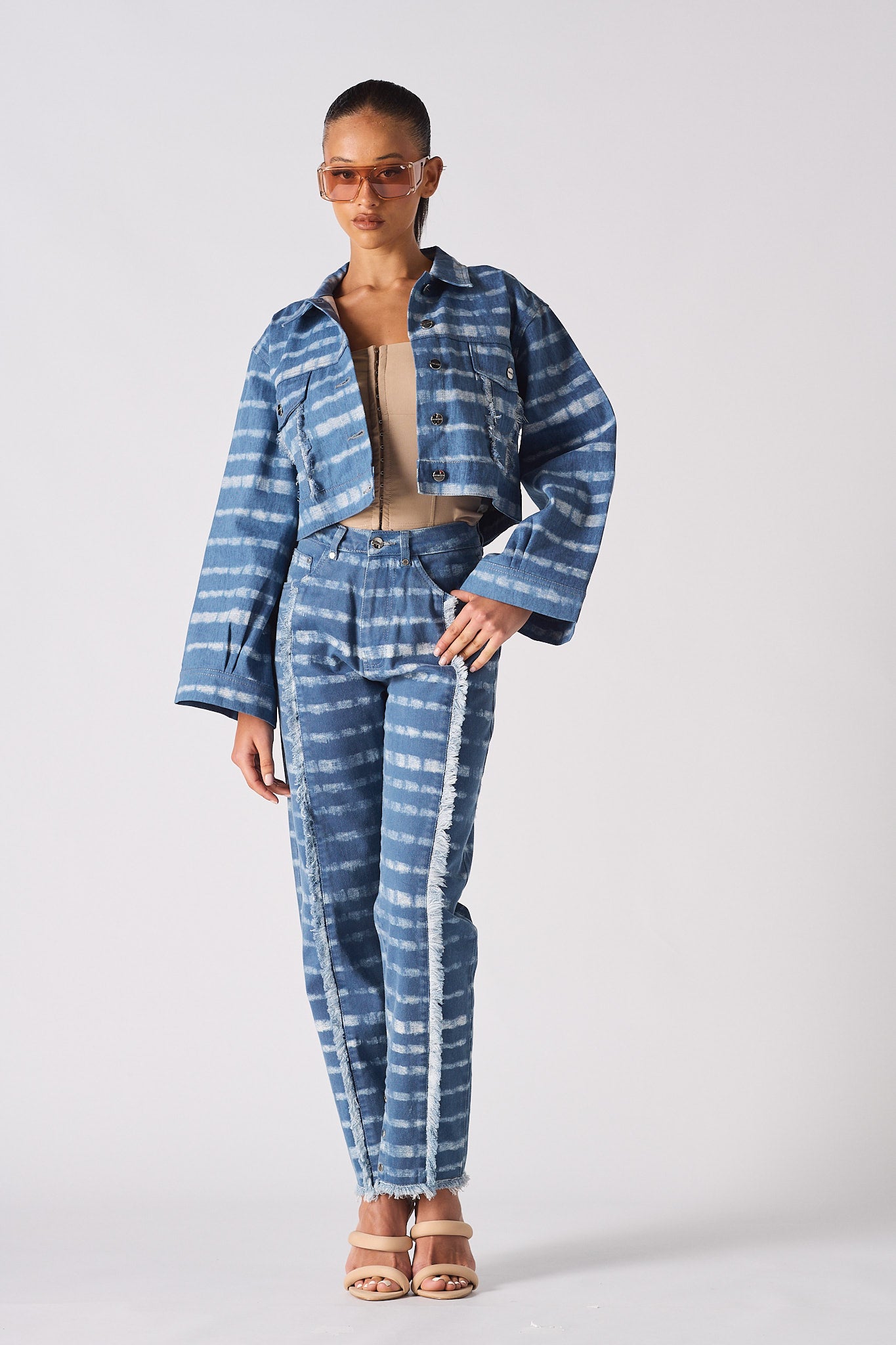 - Blue printed denim