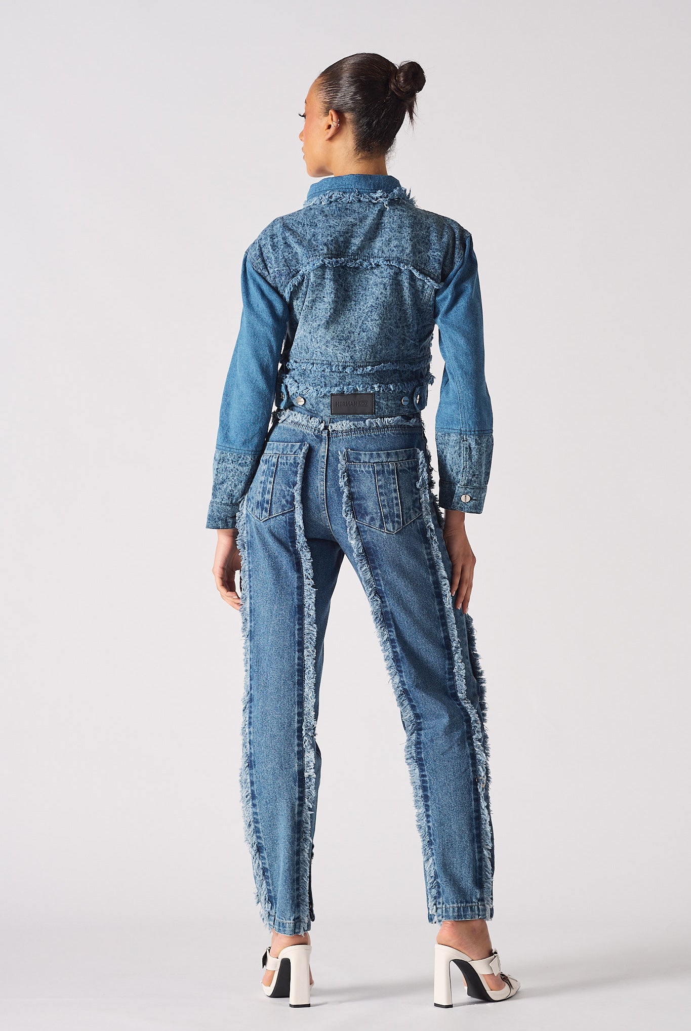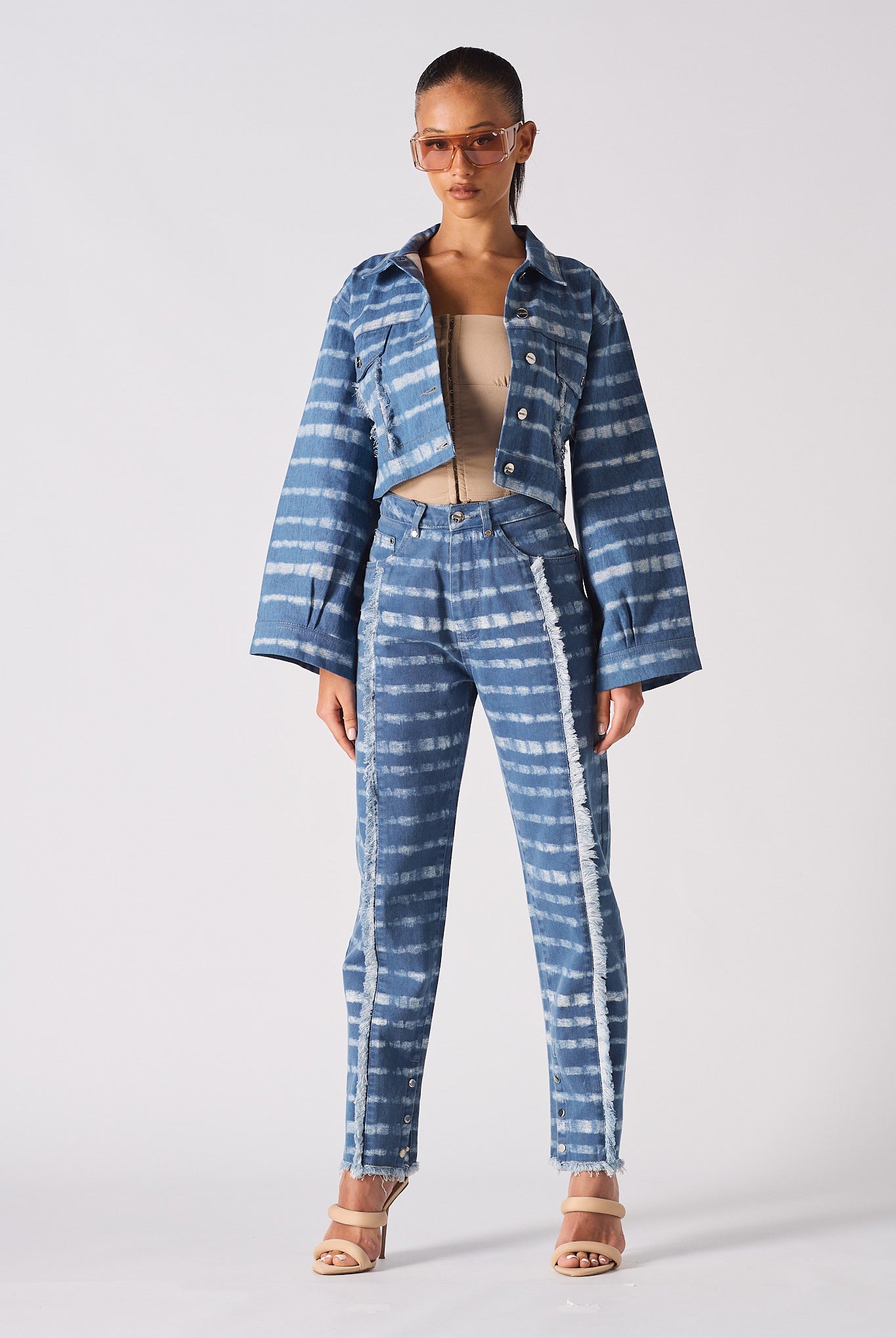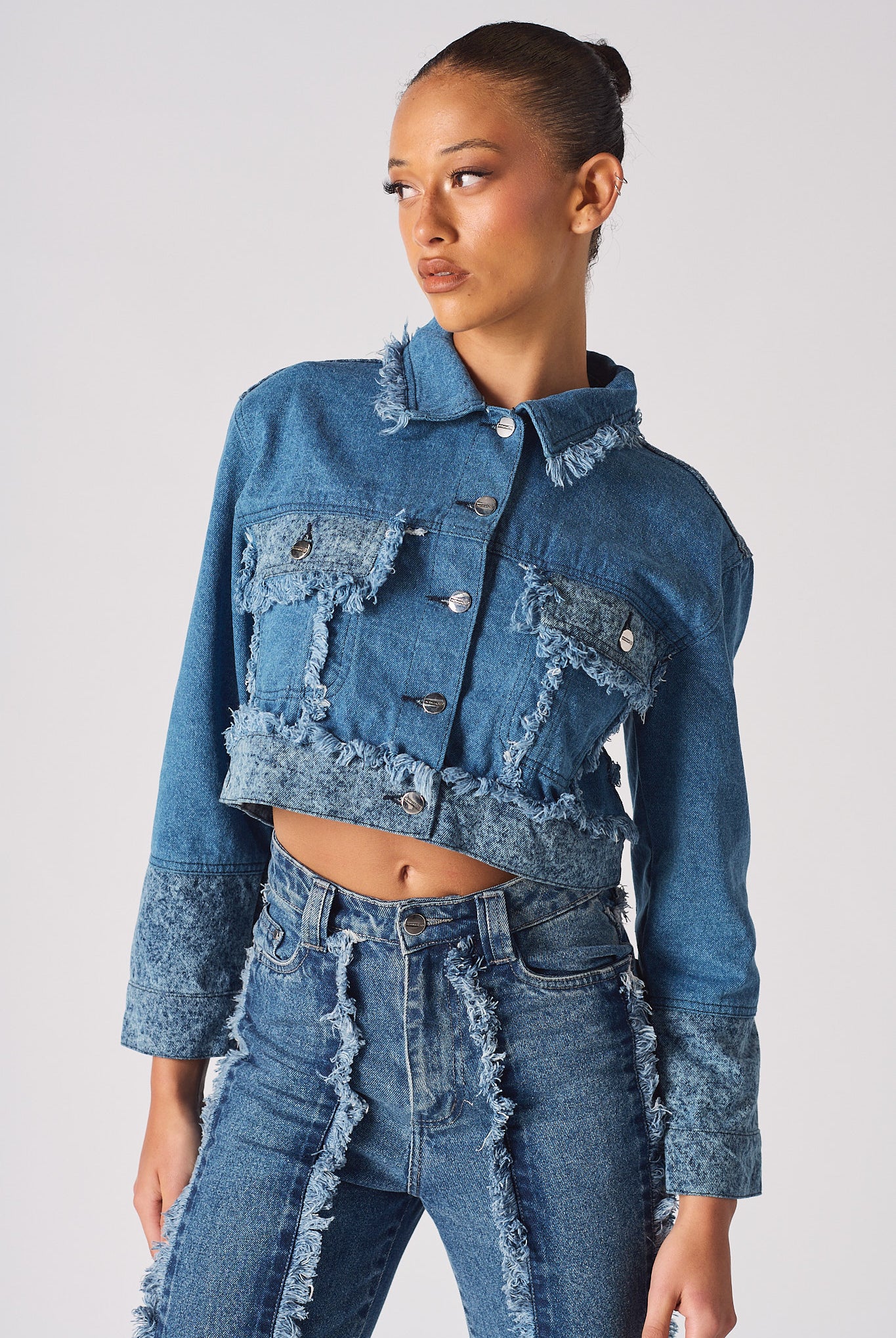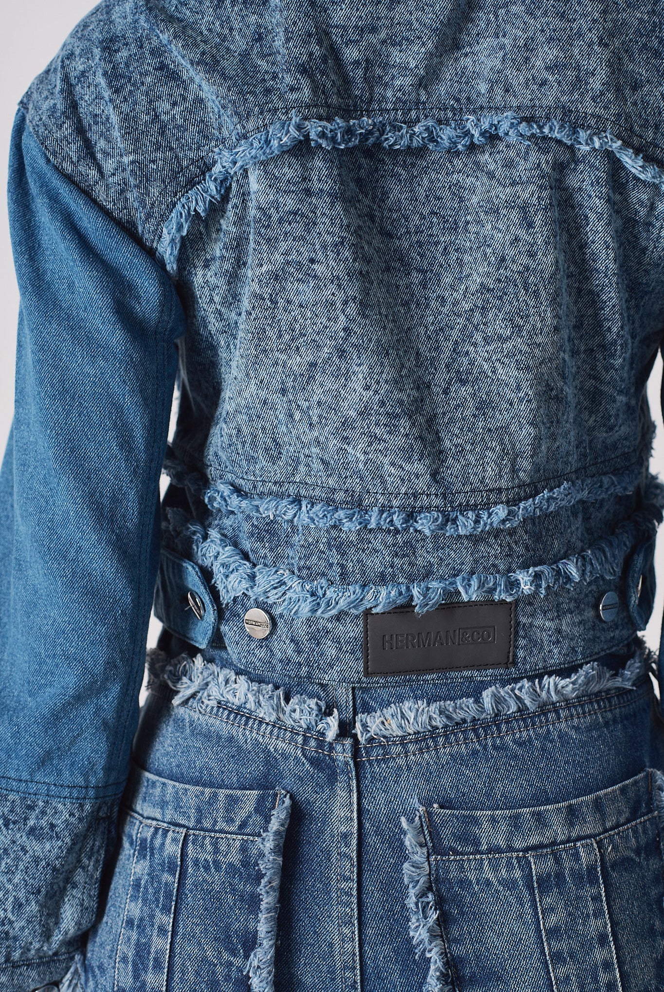 Add a touch of luxury to your off-duty wardrobe with this women's cropped denim jacket. Made from acid blue wash denim fabric, it's finished with a Shank opening to the centre front and wider sleeves for a relaxed and stylish fit silhouette. So comfy you'll never want to take it off, this cropped denim jacket is a must-have for any fashion-forward individual. Layer it over your favourite jeans for an on-trend look that'll turn heads.