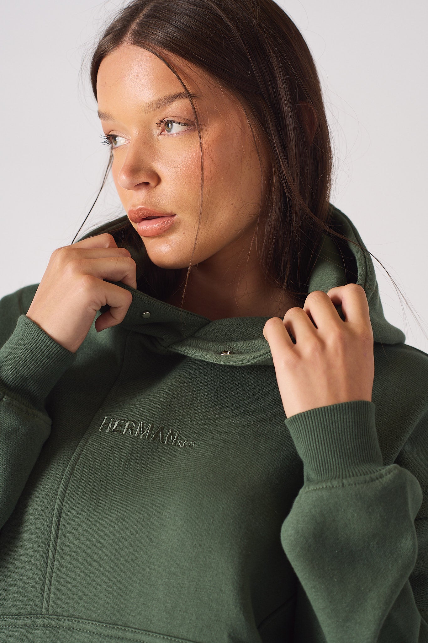 Our women's dark green hoodie is perfect for adding an extra layer of warmth and comfort to your outfit. This hoodie is made from super soft polycotton fabric, perfect for casual wear. With seam detailing, and over-sized fit, it's sure to become a staple in your wardrobe. In contrast, the kangaroo pocket is great for carrying around your essentials. Whether you're running errands or just relaxing at home, this luxury Women's hoodie is a must-have in your wardrobe.