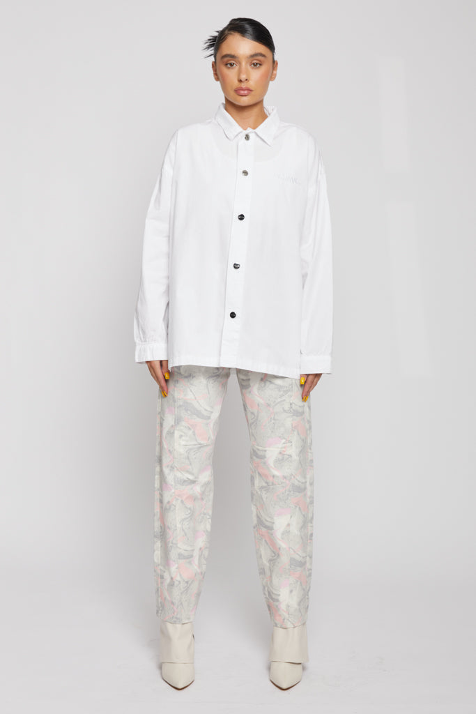Looking for a new women's staple shirt to add to your wardrobe? Look no further than our oversized white shirt! Made from a soft cotton shirting fabric, this shirt is versatile and can be styled with jeans or dress pants for a variety of looks. The shank opening in the front gives the shirt an oversized silhouette that is both comfortable and fashionable. Whether you're dressing for work or for a night out, this shirt is sure to make a statement.