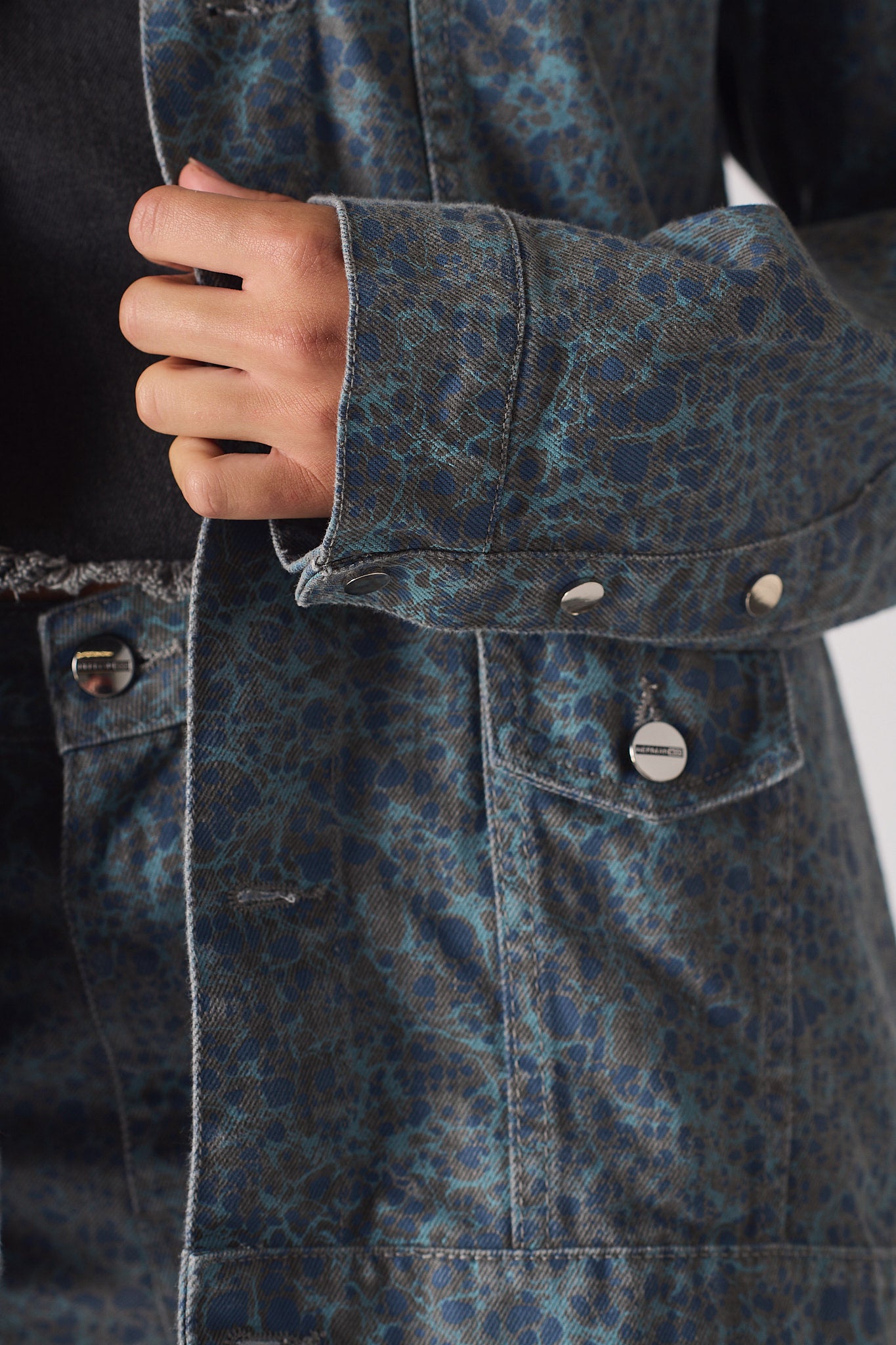 Looking to add a touch of luxury to your everyday style? Look no further than our women's speckle printed jacket! Made from premium denim fabric, while the pocket detailing adds a touch of style. This jacket is both stylish and comfortable, with tab adjusters for a perfect fit. Whether you're hitting the town or just chilling out at home, this jacket is sure to turn heads. So make a statement with psychedelic print – it's the perfect way to stand out from the crowd. Add this must-have stylish printed denim jacket to your wardrobe today!