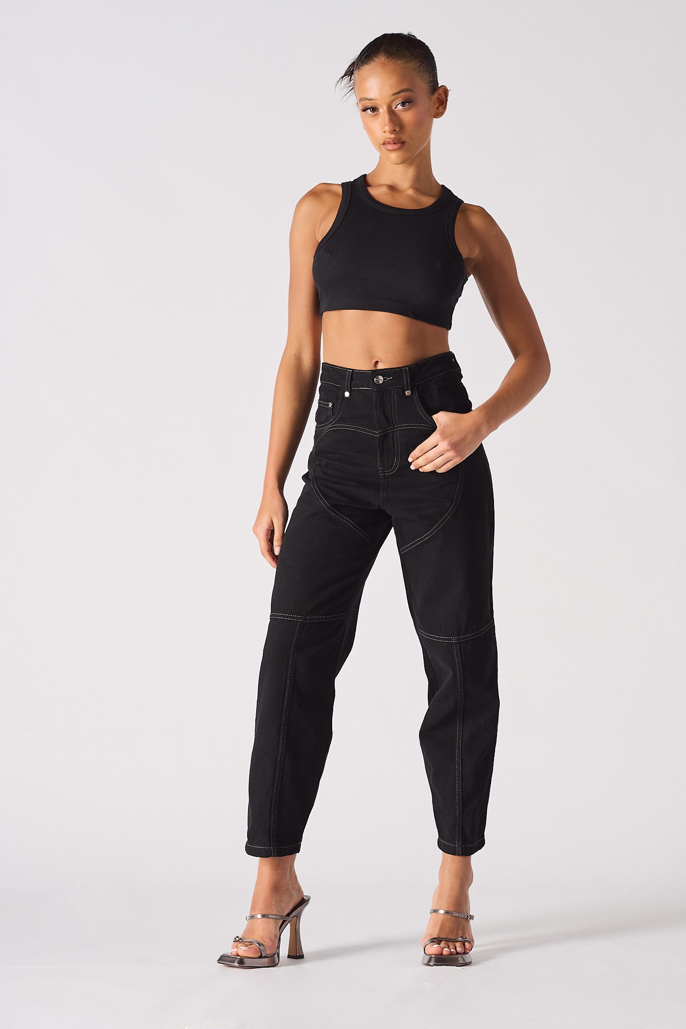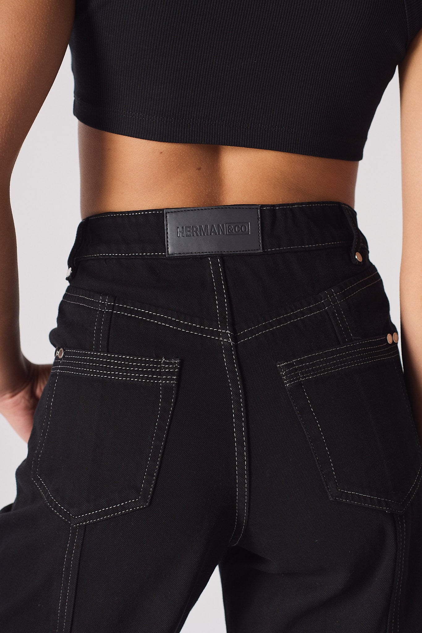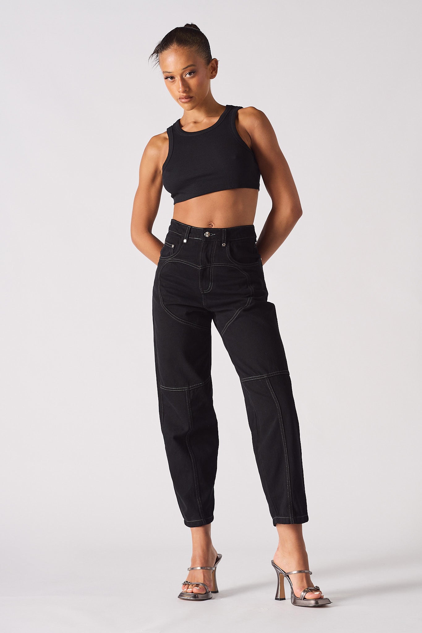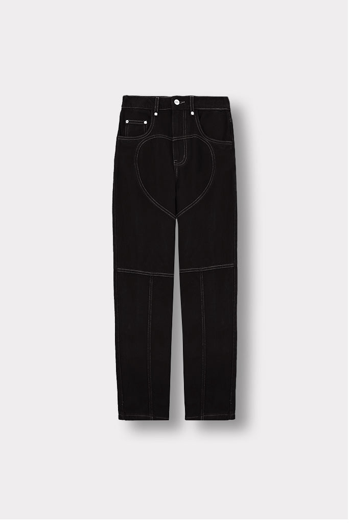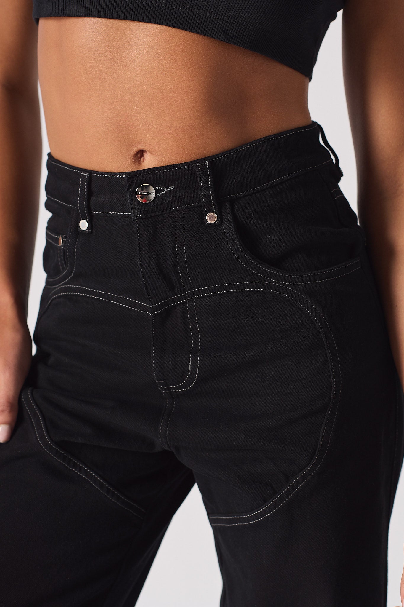 Introducing our women's heart tapered black jeans - versatile, figure-flattering jeans to take your style up a notch. Made from 100% cotton for breathable comfort, these jeans are cut in a tapered fit that flatters your figure. Plus, they feature a heart stitched detail on the front and contrast stitch detailing for a touch of edgy style. Whether you're dressing up for a night out or keeping it casual for errands or running around town, these black jeans tapered jeans are sure to become a staple in your wardrobe. Pair them with your favourite top and shoes and you're good to go!