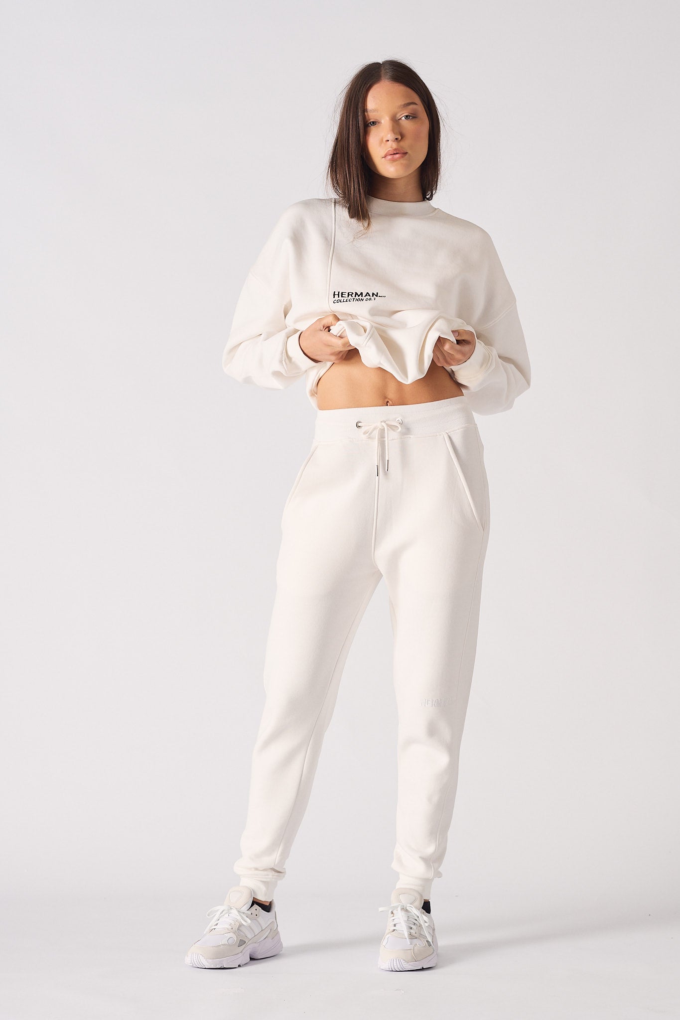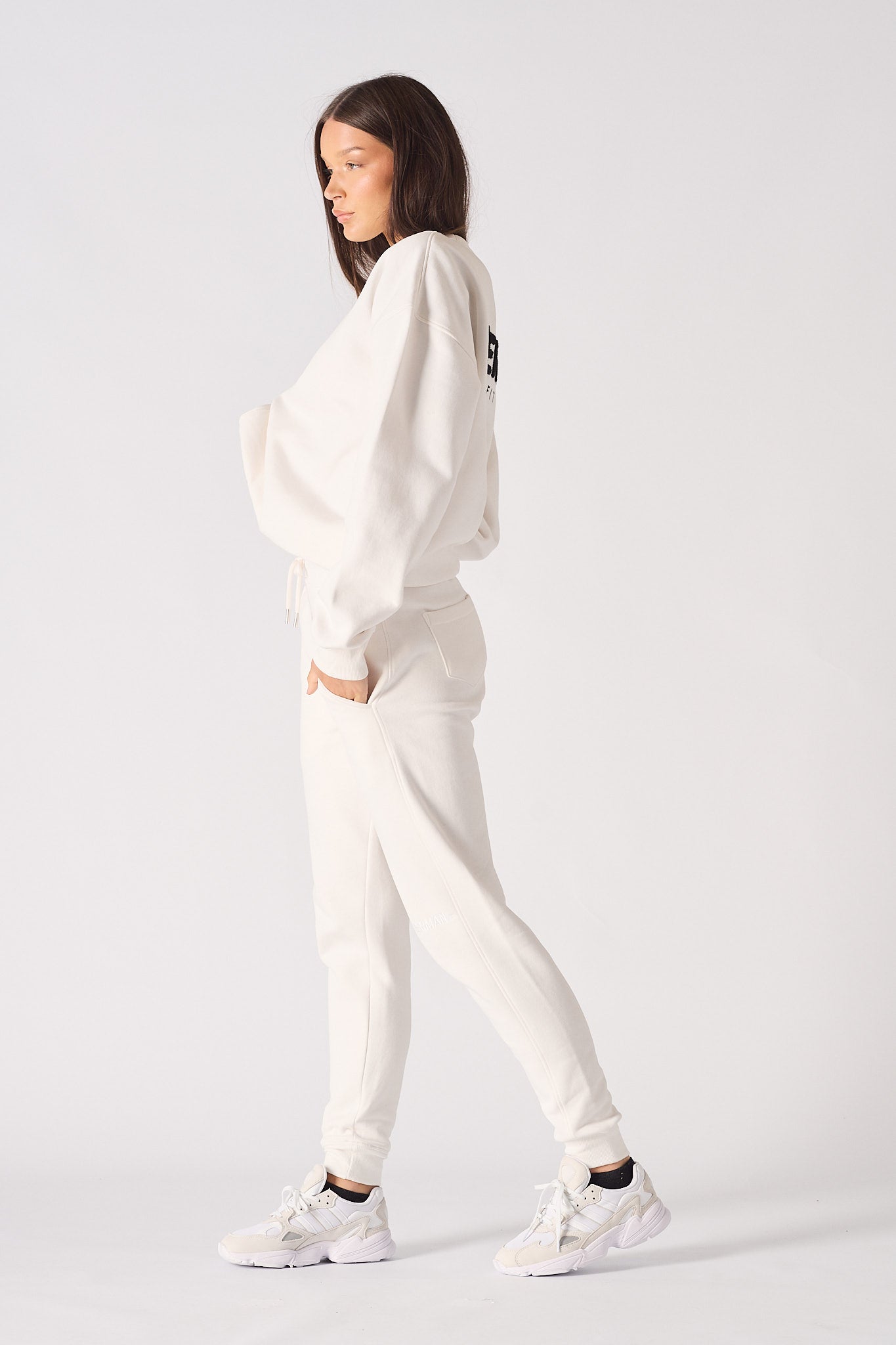 Looking for a perfect pair of relaxed-fit joggers that you can wear on lazy weekends? Well, look no further than our Women's white joggers! Made from premium polycotton fabric, these joggers are soft and comfortable to wear. They also have brushback quality to ensure that they stay looking good for longer. With a slightly oversized fit, these joggers are perfect for both men and women. And thanks to the seam detailing, they'll always look sharp. Finished with a tapered fit and rib cuff and waistband, these white joggers will never go out of style.